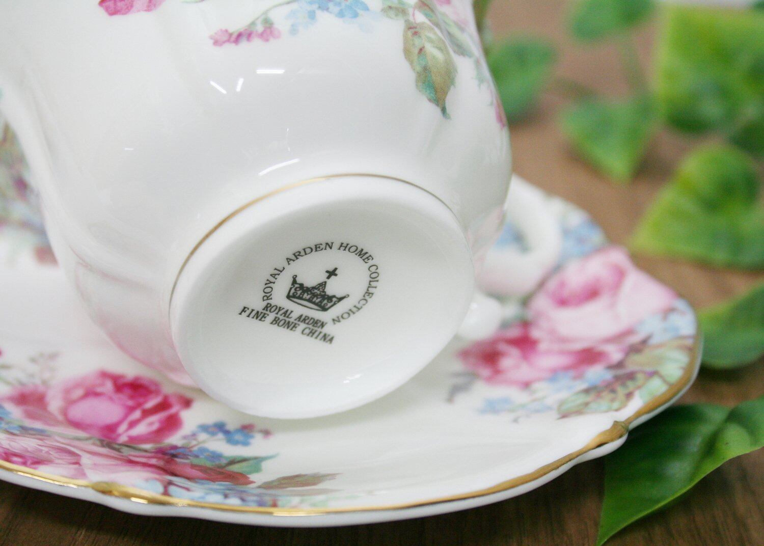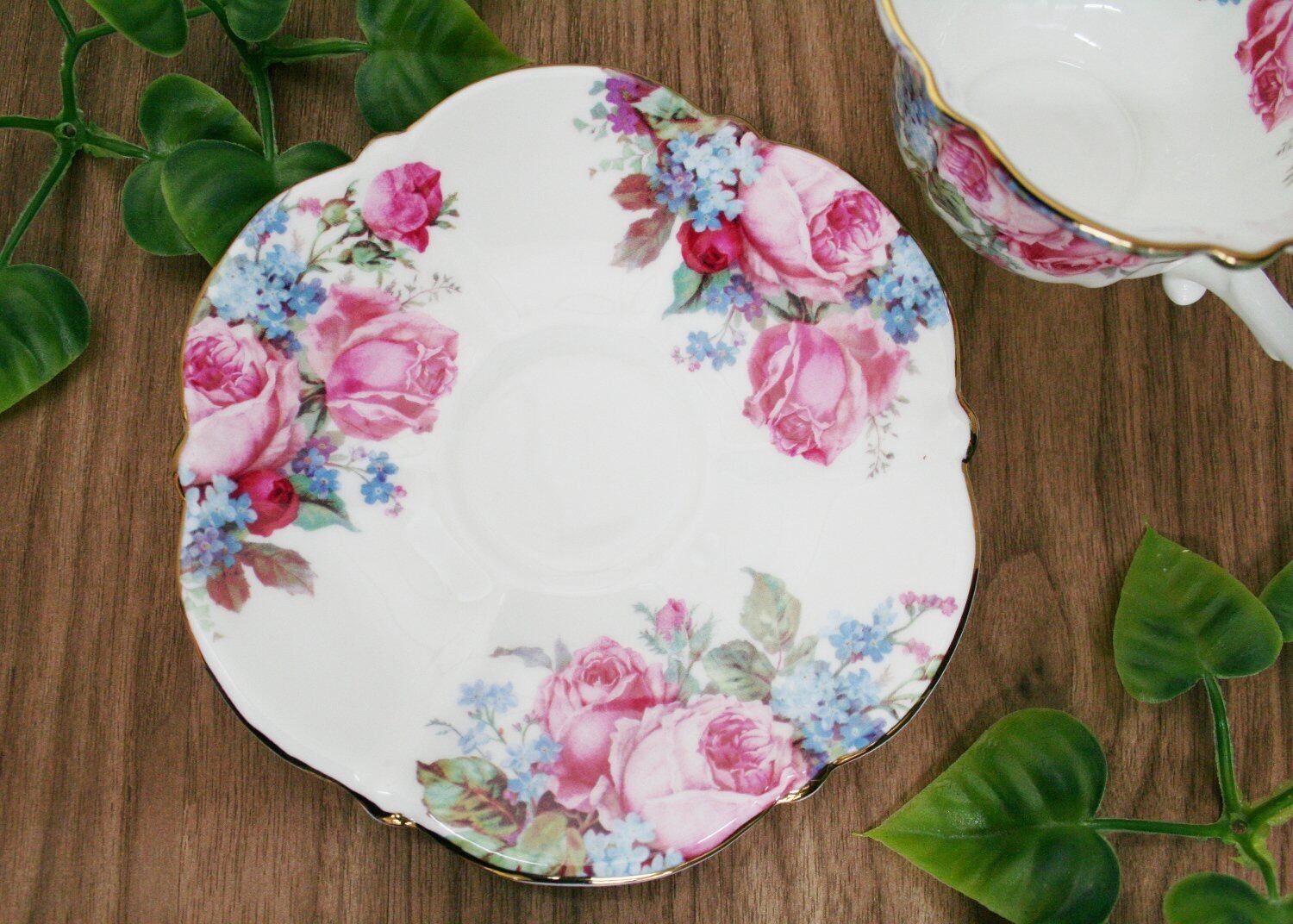 コーヒー ティー カップ ソーサー セット 陶器 電子レンジ対応 ボーンチャイナ 240ml 花柄 薔薇 ブルー 37100