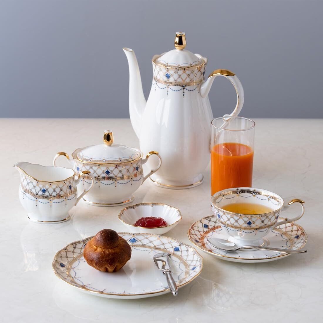 ステージに立つ歌姫のドレスを思わせるデザインで宝石のような深みのあるブルーと煌めくゴールドの装飾は、時を忘れていつまでもうっとりと眺めていたくなります。