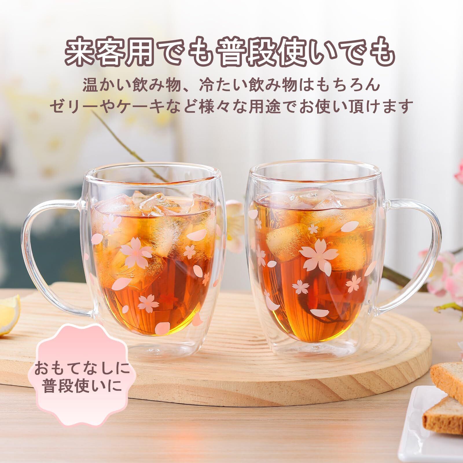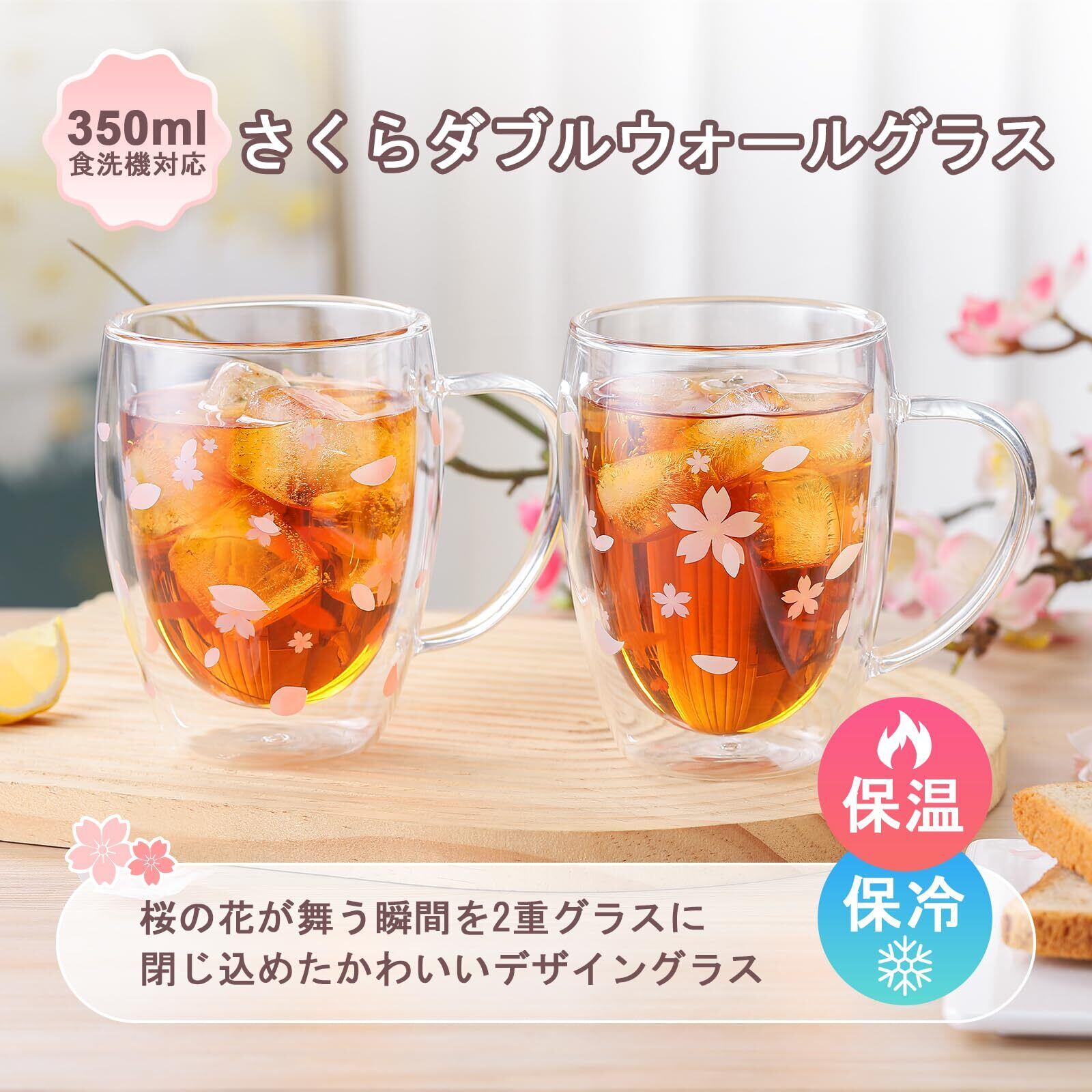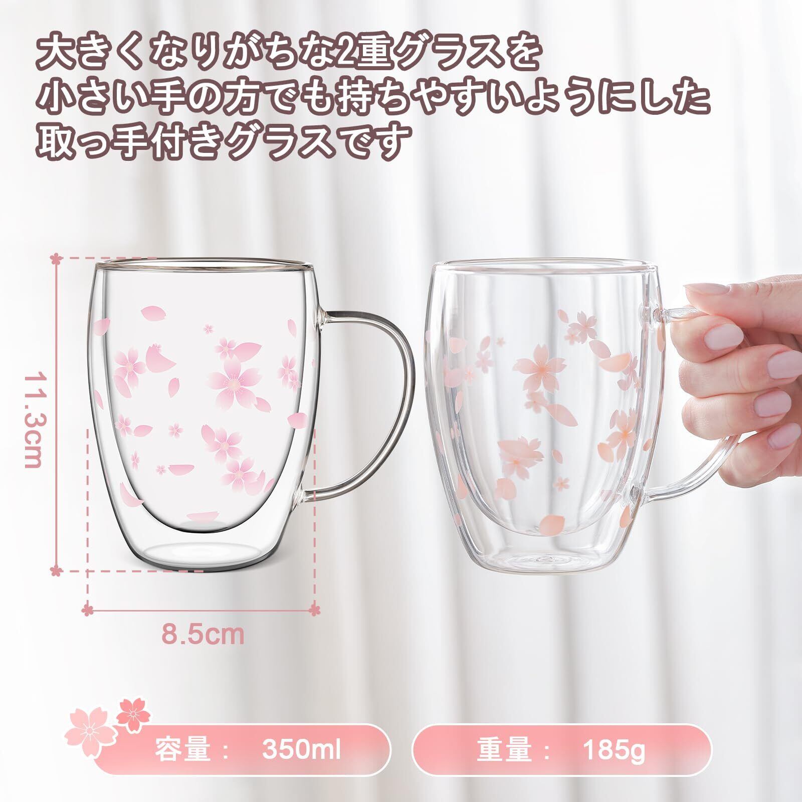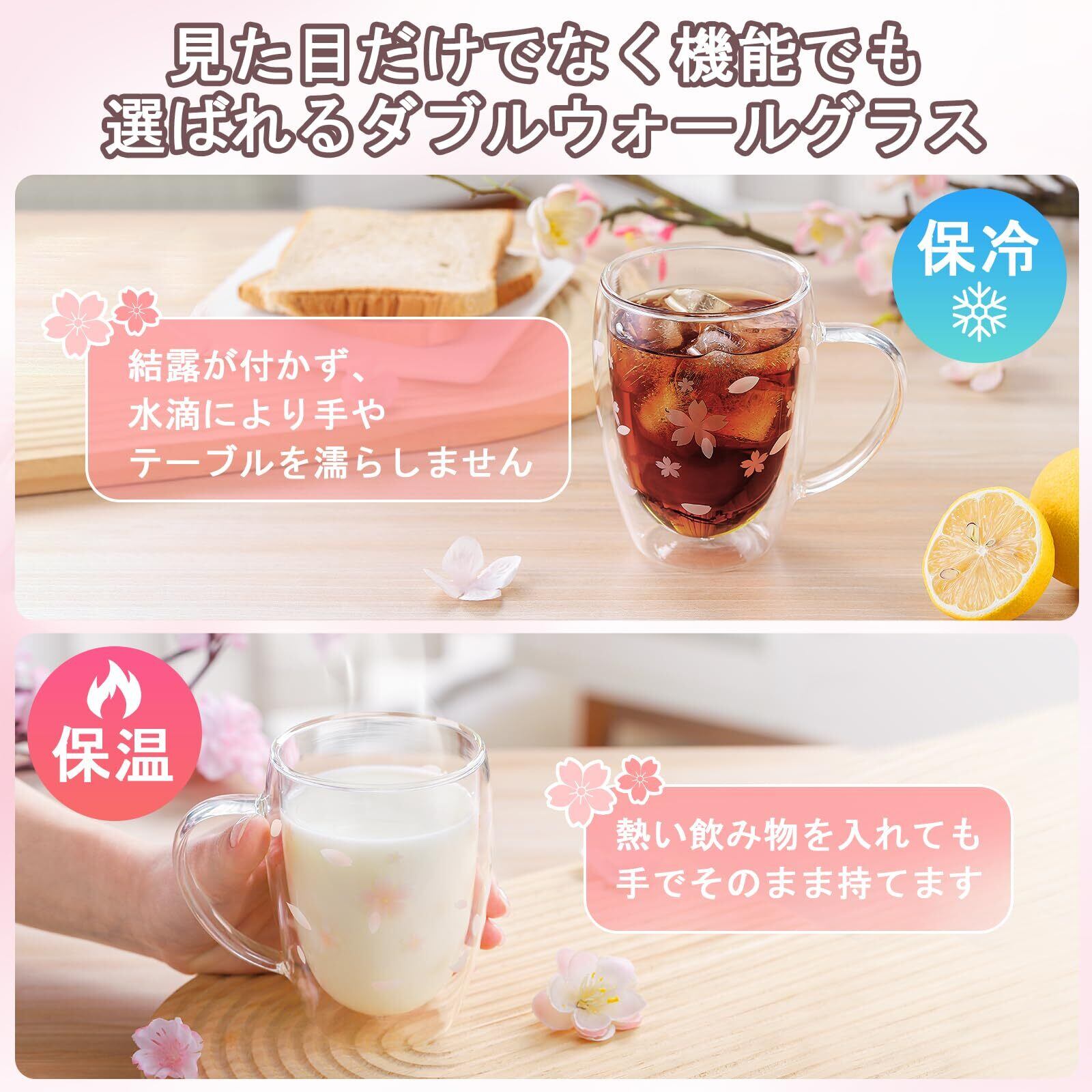 【数量限定】女性プレゼント ダブルウォールグラス さくら 350ml 誕生日 母の日 ギフト 卒業 退職 還暦祝い 取っ手付き 食洗機対応 桜柄 ギフト用マグカップ コーヒーカップ 化粧箱入り