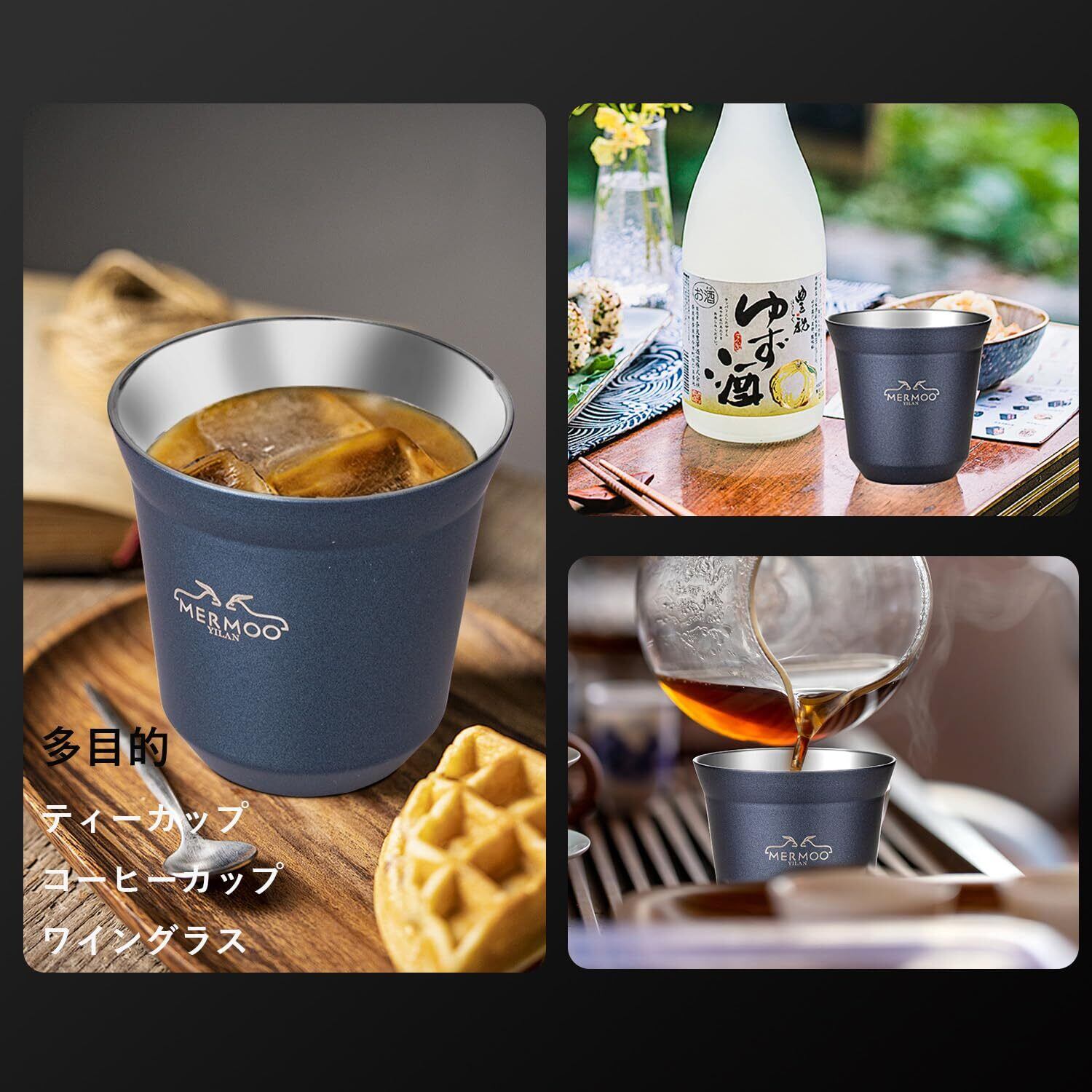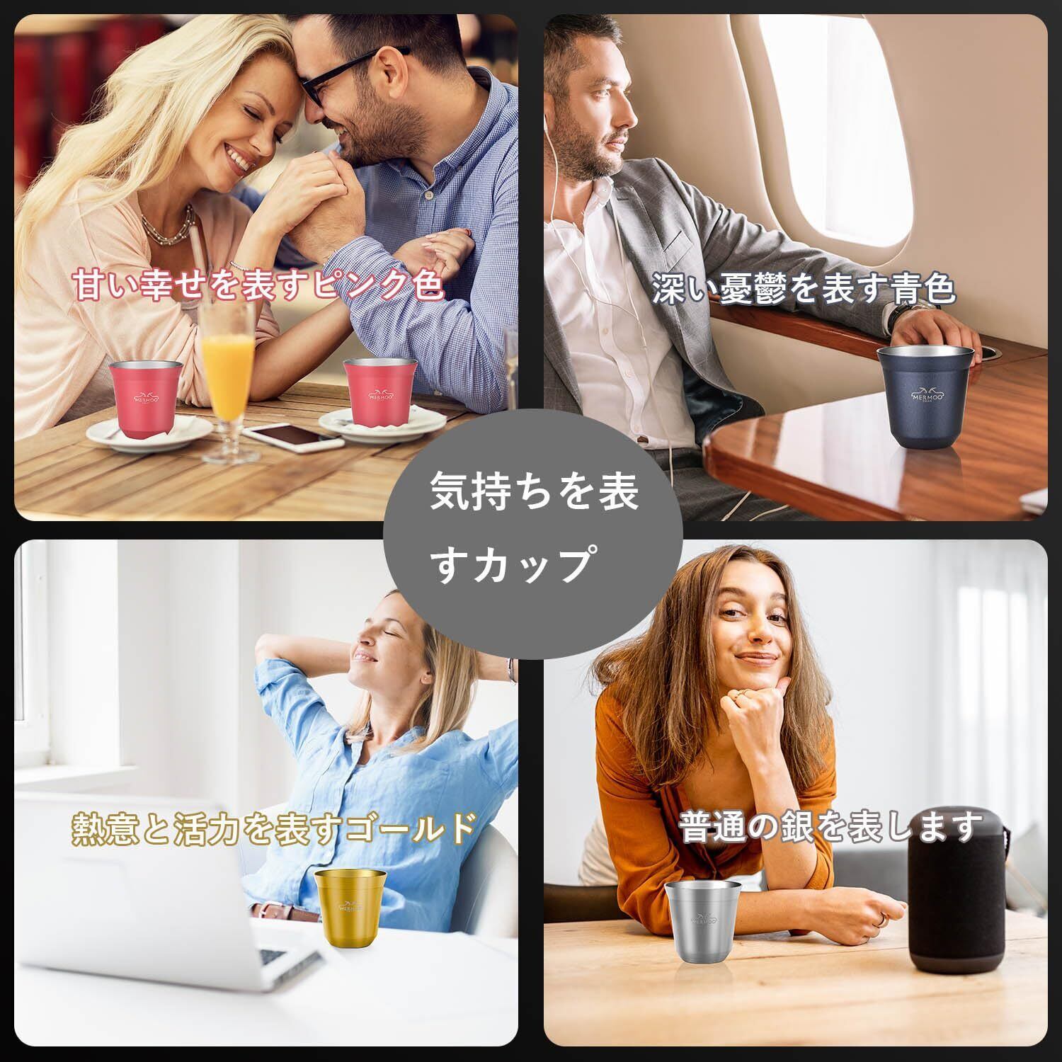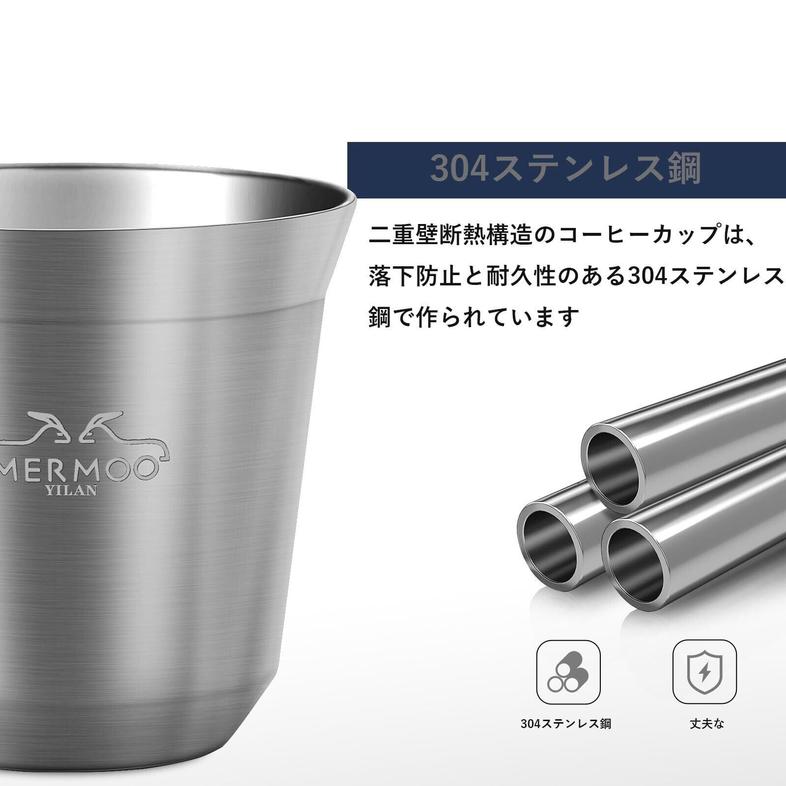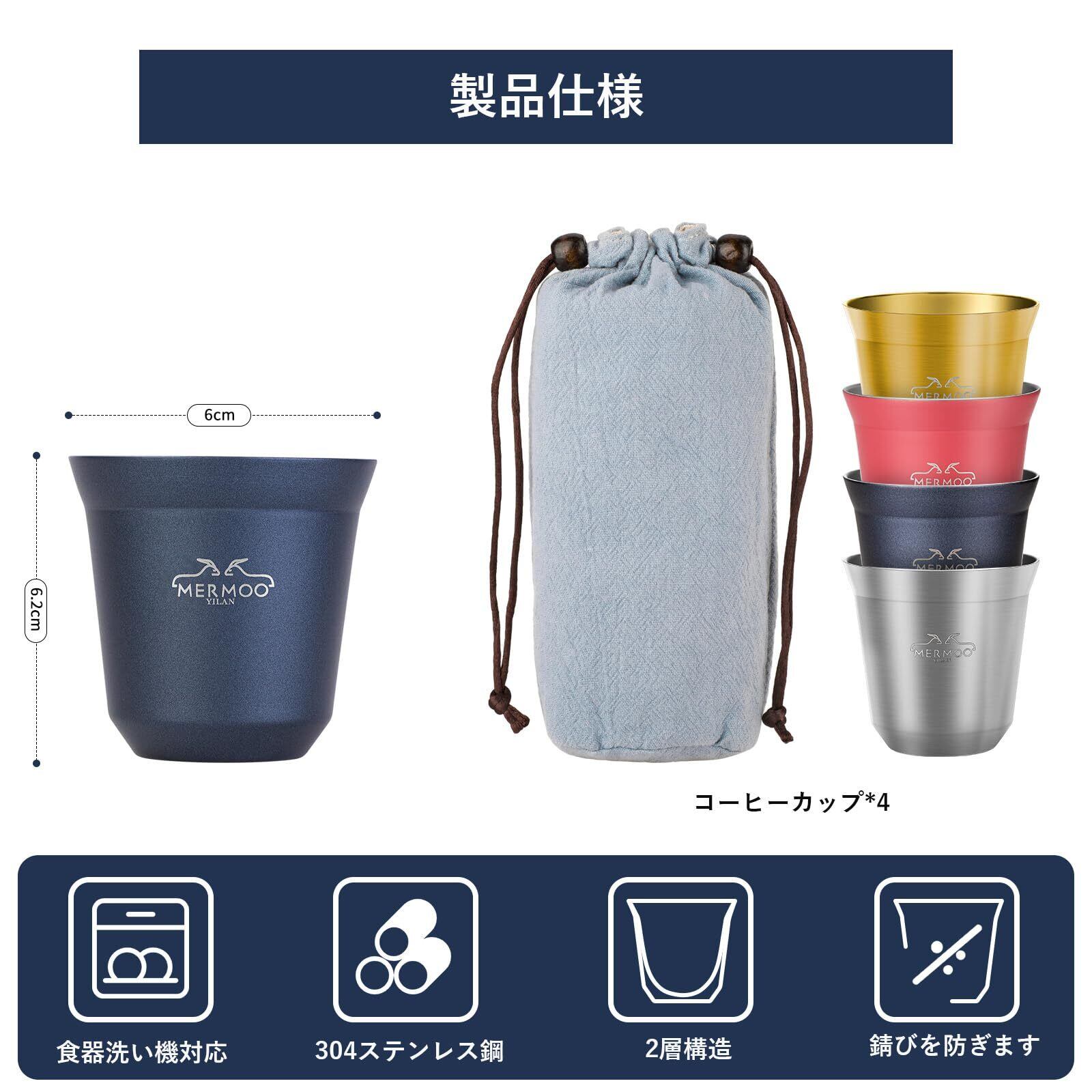 MERMOO YILAN デミタスカップ エスプレッソカップ 二重断熱ステンレス製 携帯ポーチ付き 80ml 4個セット 割れない アウトドア キャンプ コーヒーショップ対応