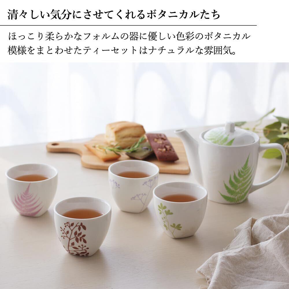 キラキラと光るラスター模様が印象的なボタニカル柄の急須セットです。ポットと4つのコップがセットです。