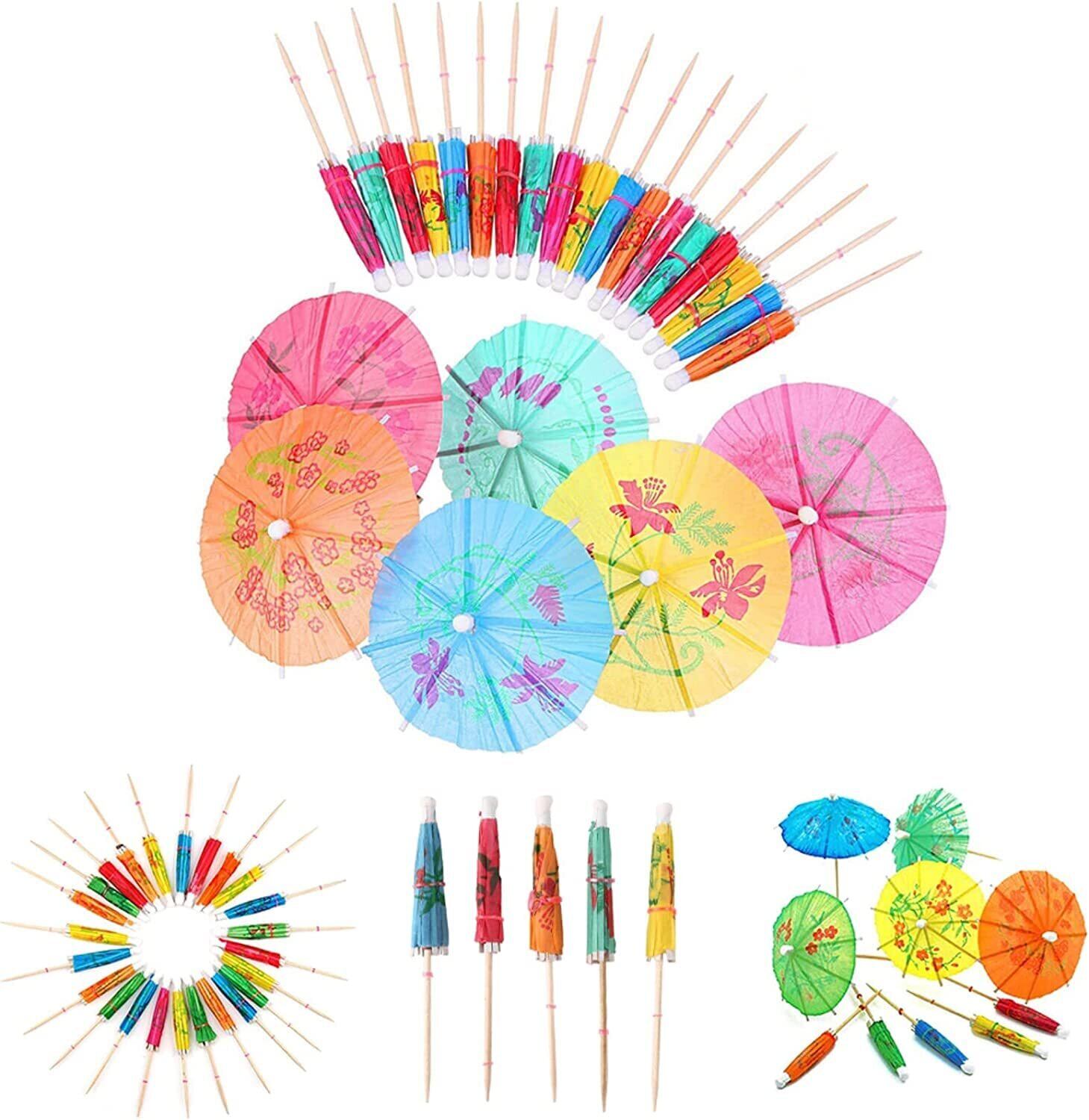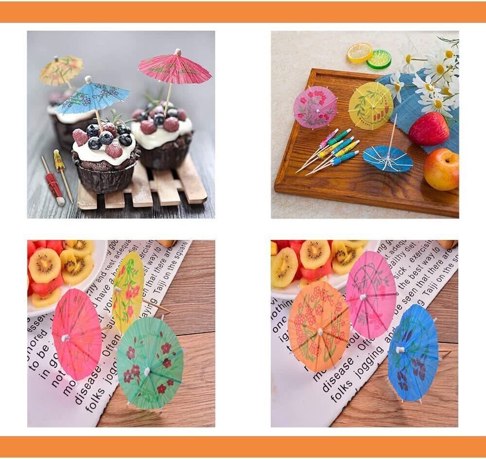 LIKENNY カクテル傘 爪楊枝傘 カクテル 料理の飾り ミニ紙傘 カラフル ハワイ傘 飾り フルーツピック (約50個セット)