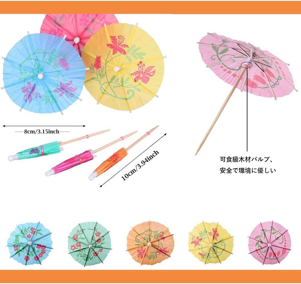 カクテル傘 爪楊枝傘 カクテル 料理の飾り ミニ紙傘 カラフル ハワイ傘 飾り フルーツピック BAR レストラン イベント パーティーグッズ