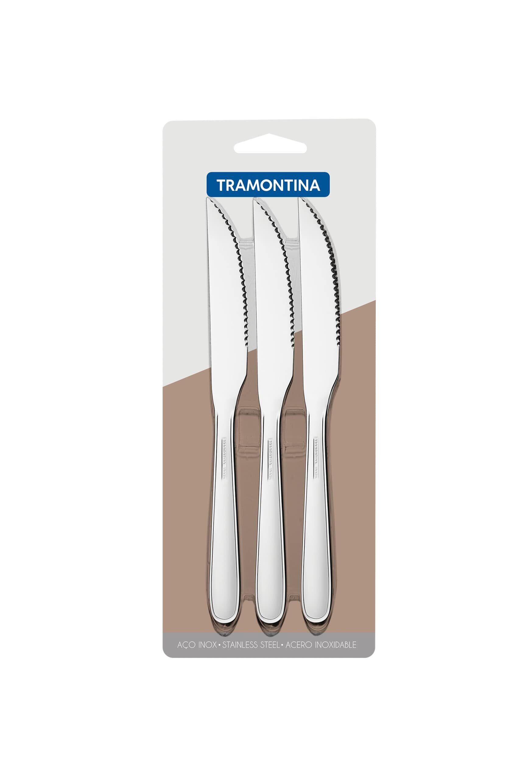 トラモンティーナ ステーキナイフ マレーシア 21cm 3本セット オールステンレス 食洗機対応 耐久性 軽量 ブラジル製 66902/181 TRAMONTINA シルバー