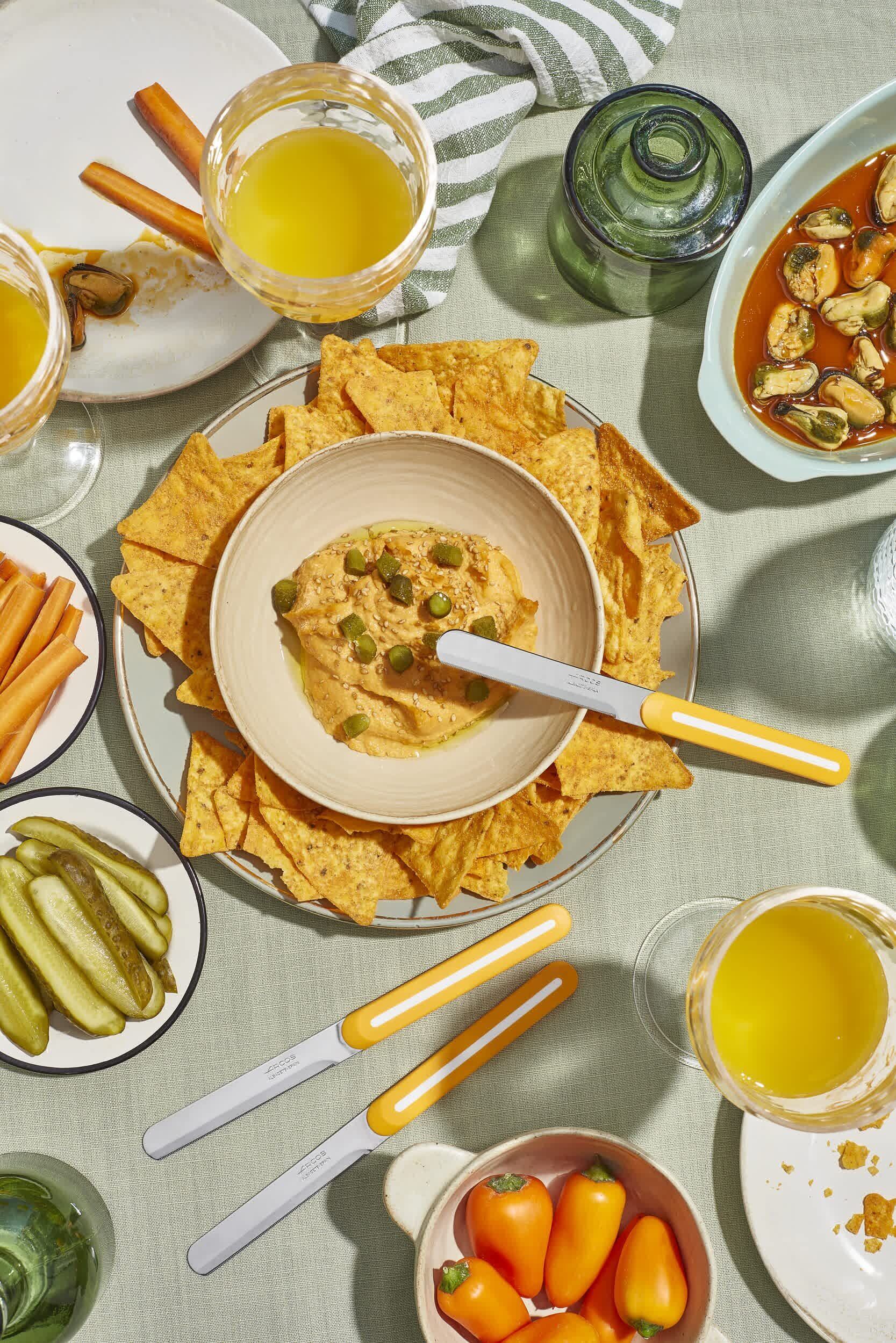 ARCOS アルコス テーブルナイフ ギザ刃 スペイン製 食洗機対応 ニトラムステンレス鋼 (刃渡り10cm, オレンジ/ホワイトライン, 品番373656)