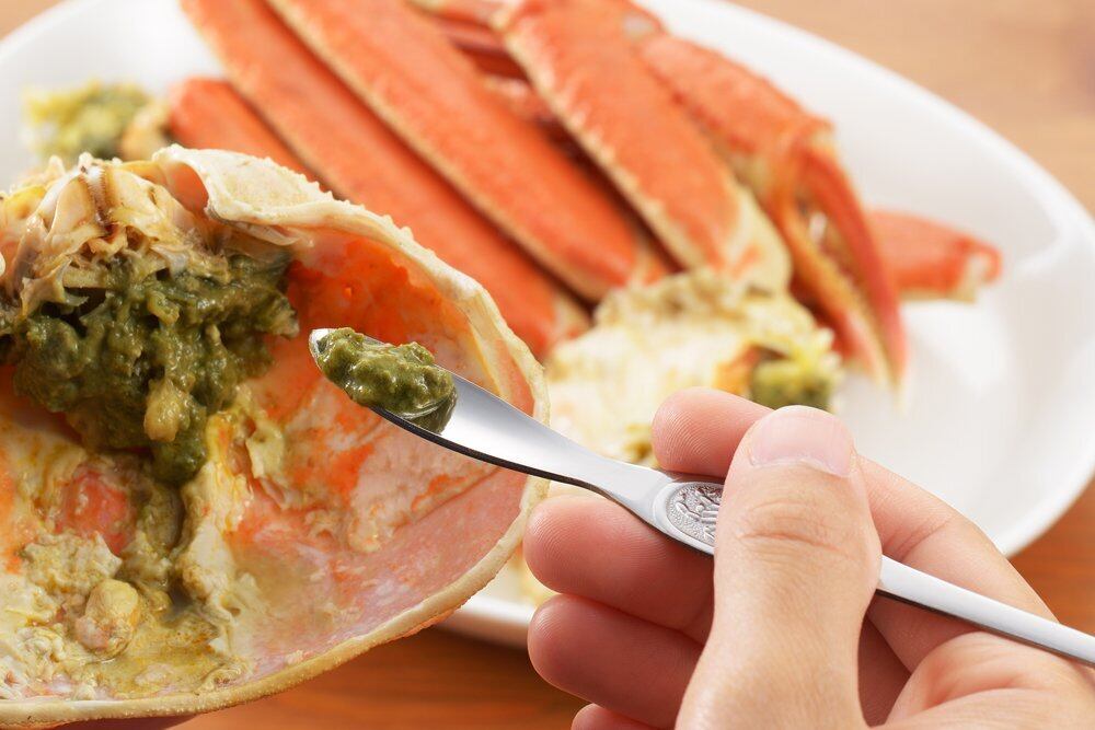 スプーン形状の持ち手で、かにみそもすくえる