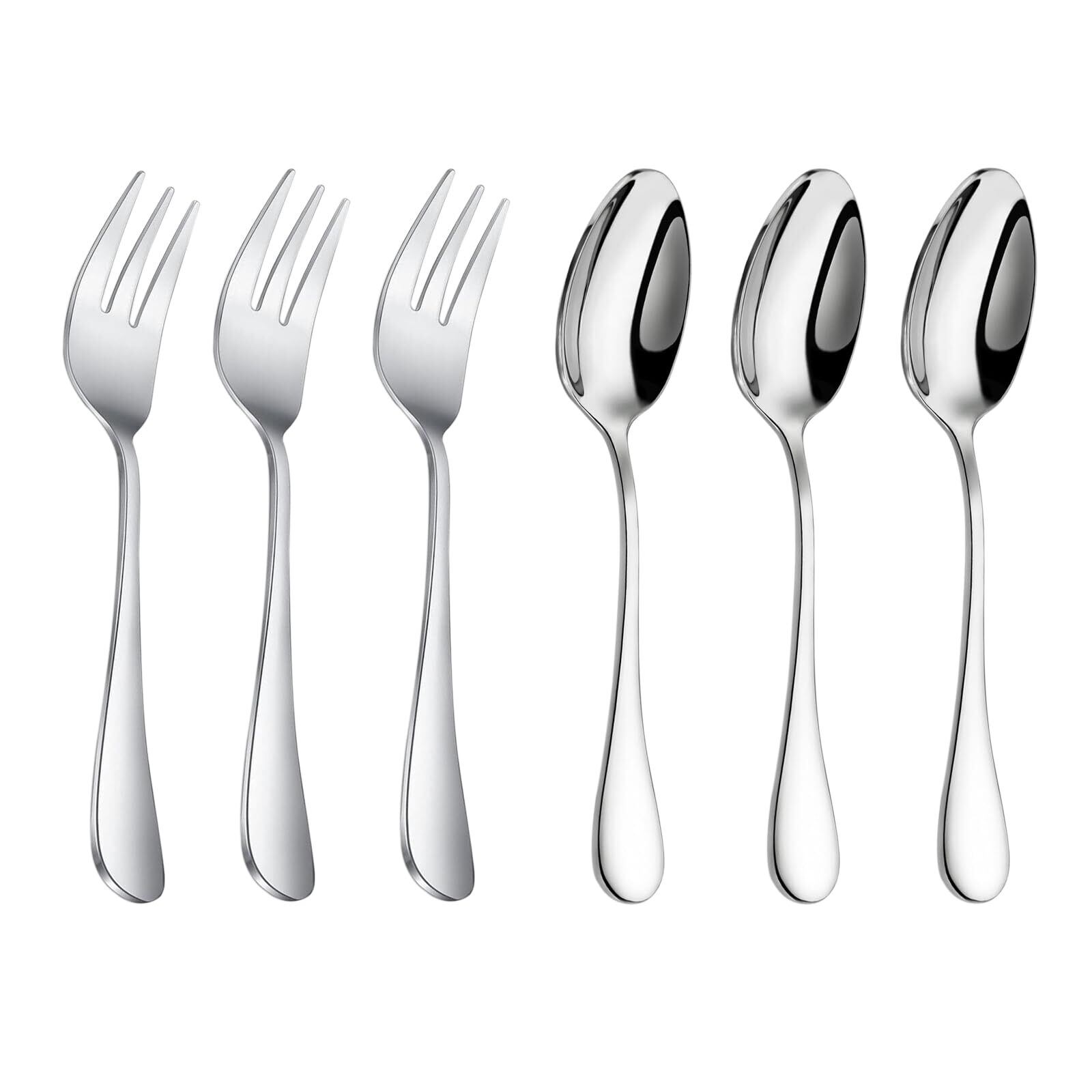 デザートフォーク スプーンセット ケーキフォーク ティースプーン 6本 ステンレス鋼 ミラー仕上げ 食洗器対応 シルバー
