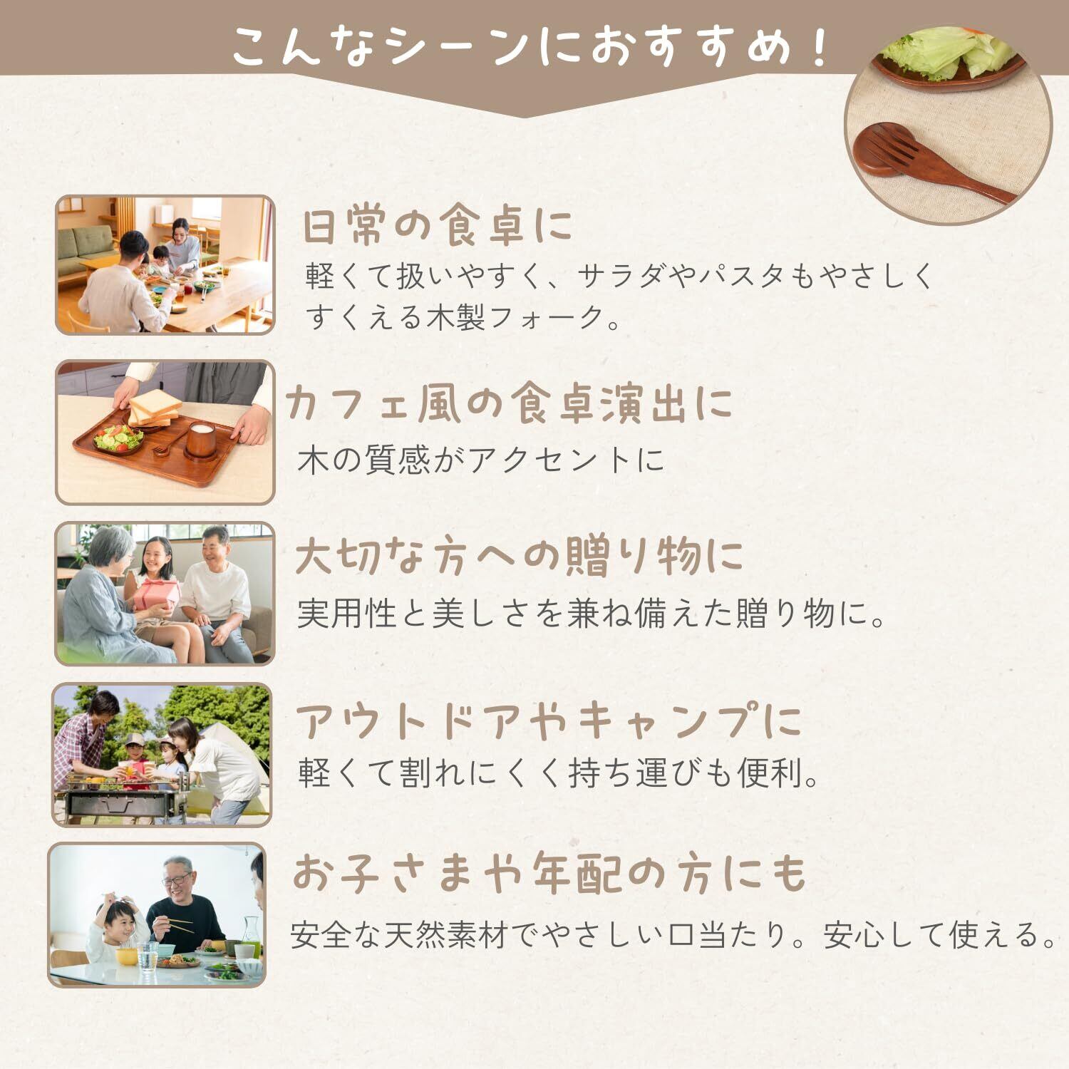【 プレゼントやギフトにもおすすめ 】木製ならではの温かみと高級感を兼ね備えたフォークは、結婚祝いや引っ越し祝い、誕生日プレゼントとしても喜ばれる一品。シンプルでおしゃれなデザインなので、セットで揃えるのもおすすめです。