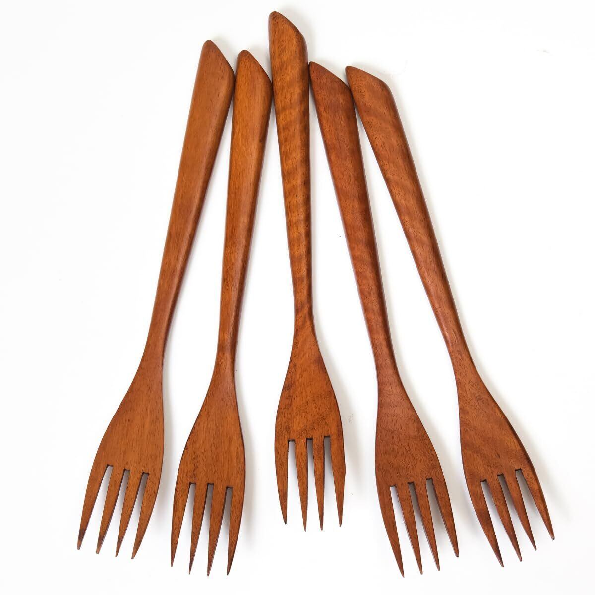 【特価セール】フォーク(木製漆塗り/20.5cm/斜め型)5本セット|家族や来客にも使いやすい木製フォークセット TAB-501