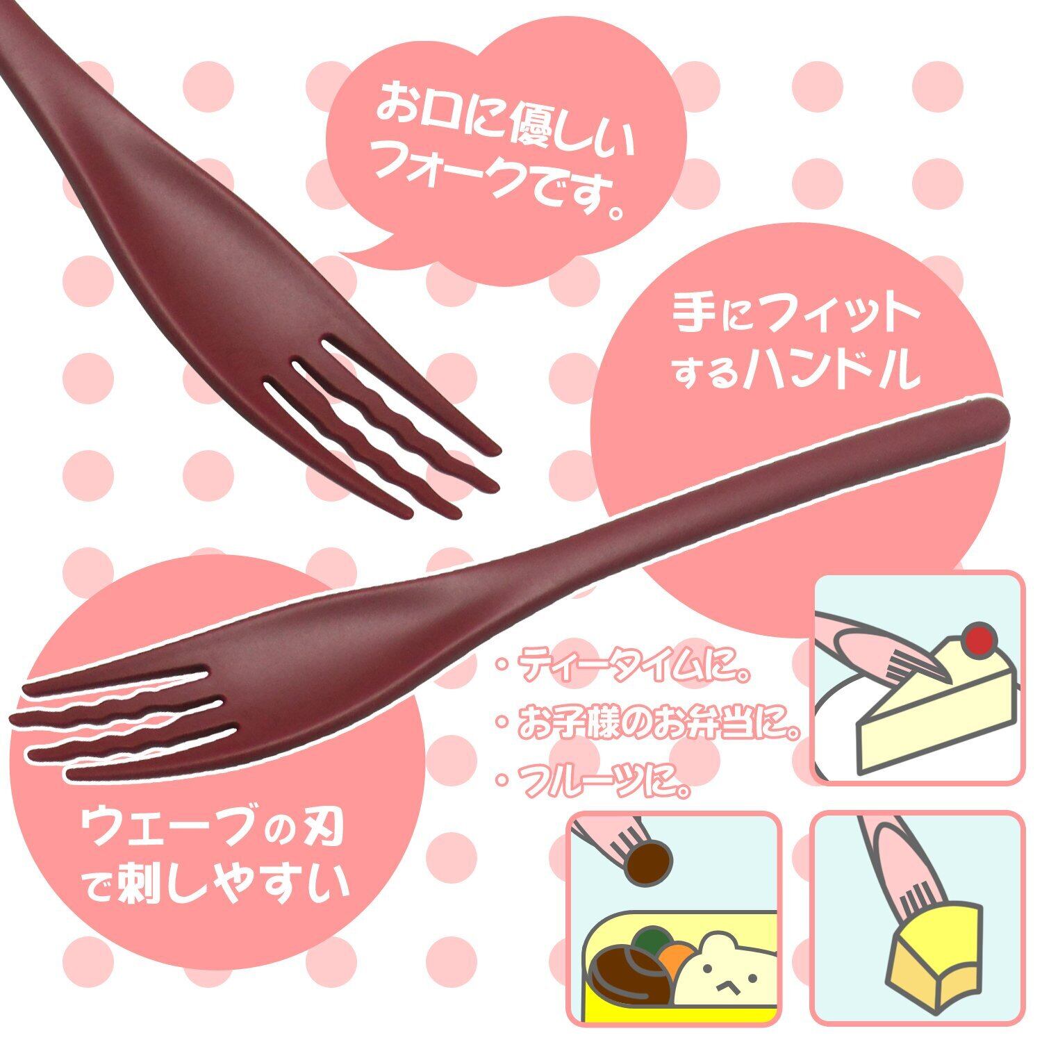 熱くなりにくい樹脂製。お口に運んだ時の口当たりも優しいフォークです。