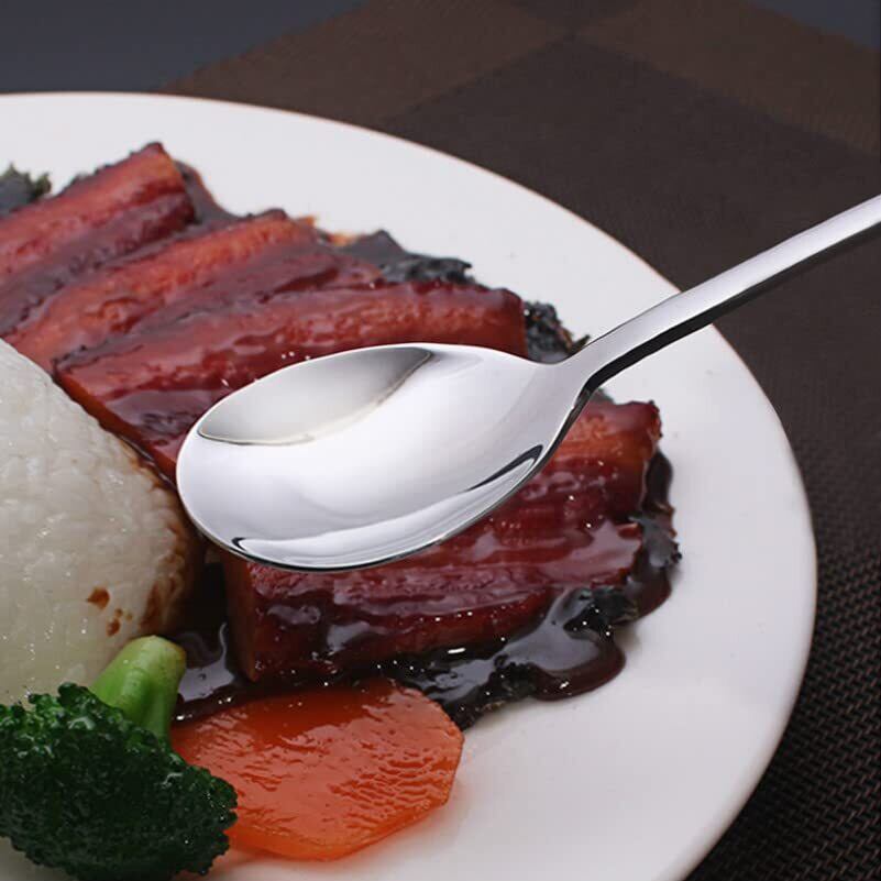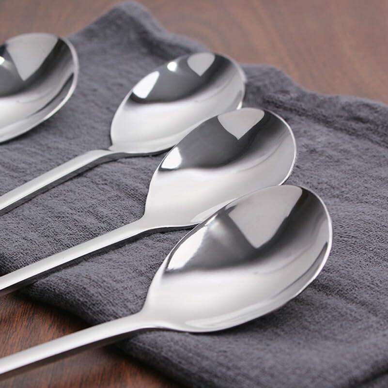 【シンプルデザイン 】ステンレススプーンは装飾を省いたシンプルデザインとなっています。高い研磨加工を施し、鏡面仕上げによりなめらかな表面を実現しています。シンプルな形状により、お手入れが容易で長期間の使用に適しています。