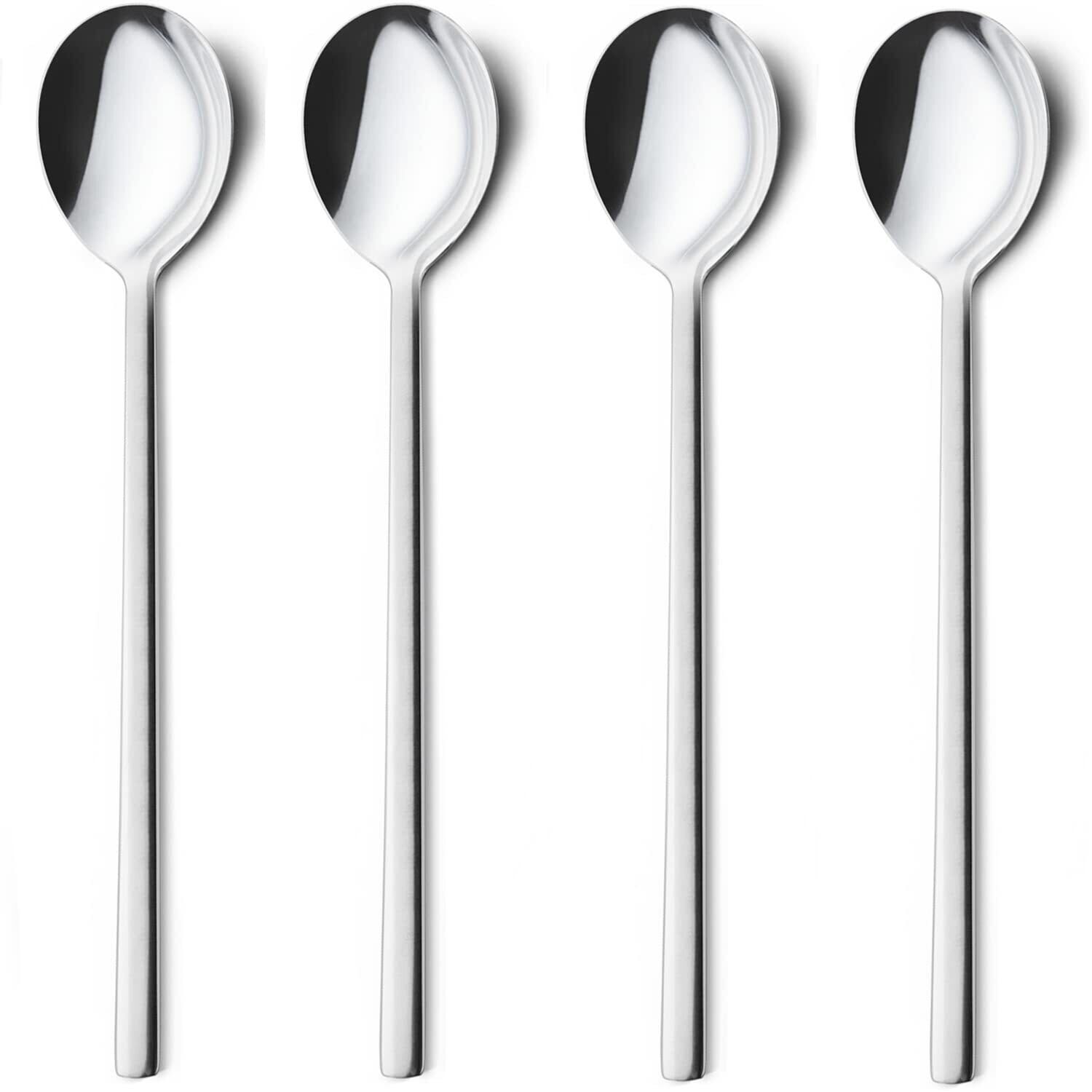 AOOSY 韓国スプーン 4本セット 18-8ステンレス 22cm 食洗機対応 長柄 業務用 チャーハン サラダ カトラリー