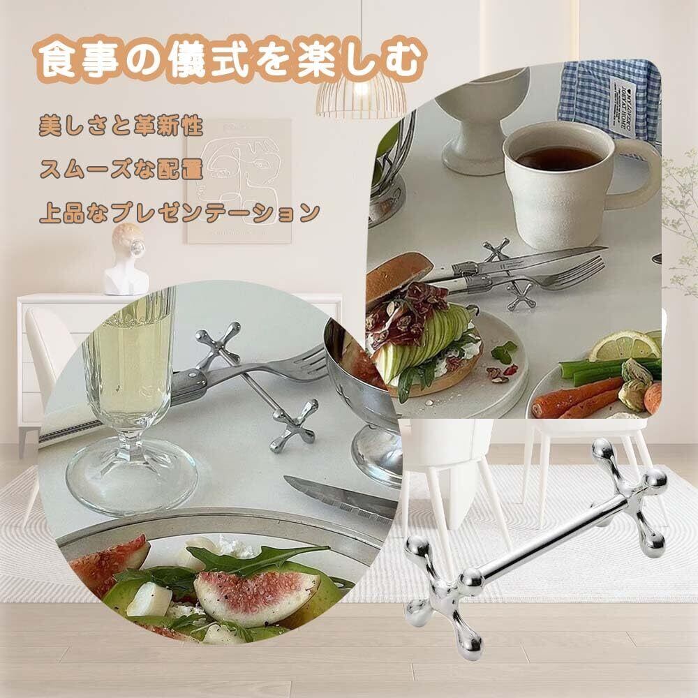 シンプルデザイン: 高級感のある素材とデザインで、食卓を華やかにしてくれ、料理を引き立ててくれます。気品のあるシルバー、光沢のあるシルバーが高級感を演出。シンプルデザインで高級感のあるカトラリーレスト。いつもの食卓をおしゃれな雰囲気に演出します。