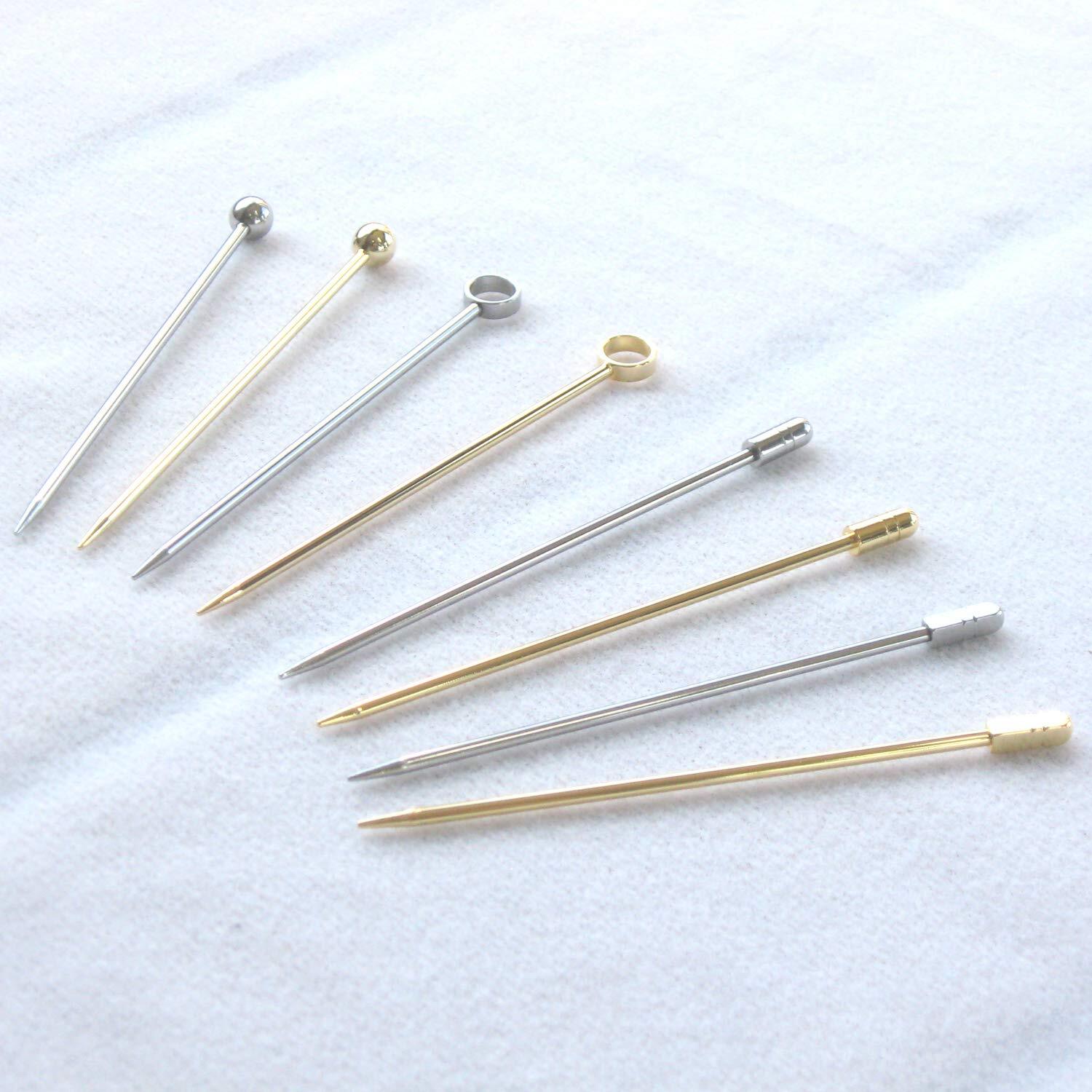形の種類は、玉付・丸穴・丸棒・角棒。それぞれにおいて、ステンレスとゴールドが選択できる。