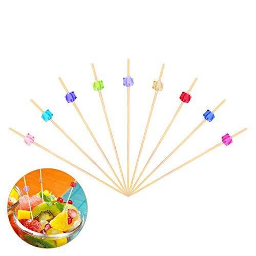 カクテルピック190個セット おしゃれ 竹 アクリルビーズ カクテルピン フルーツピック 食品スティック カクテルの飾り パーティー用 業務用にも (アクリルビーズ)