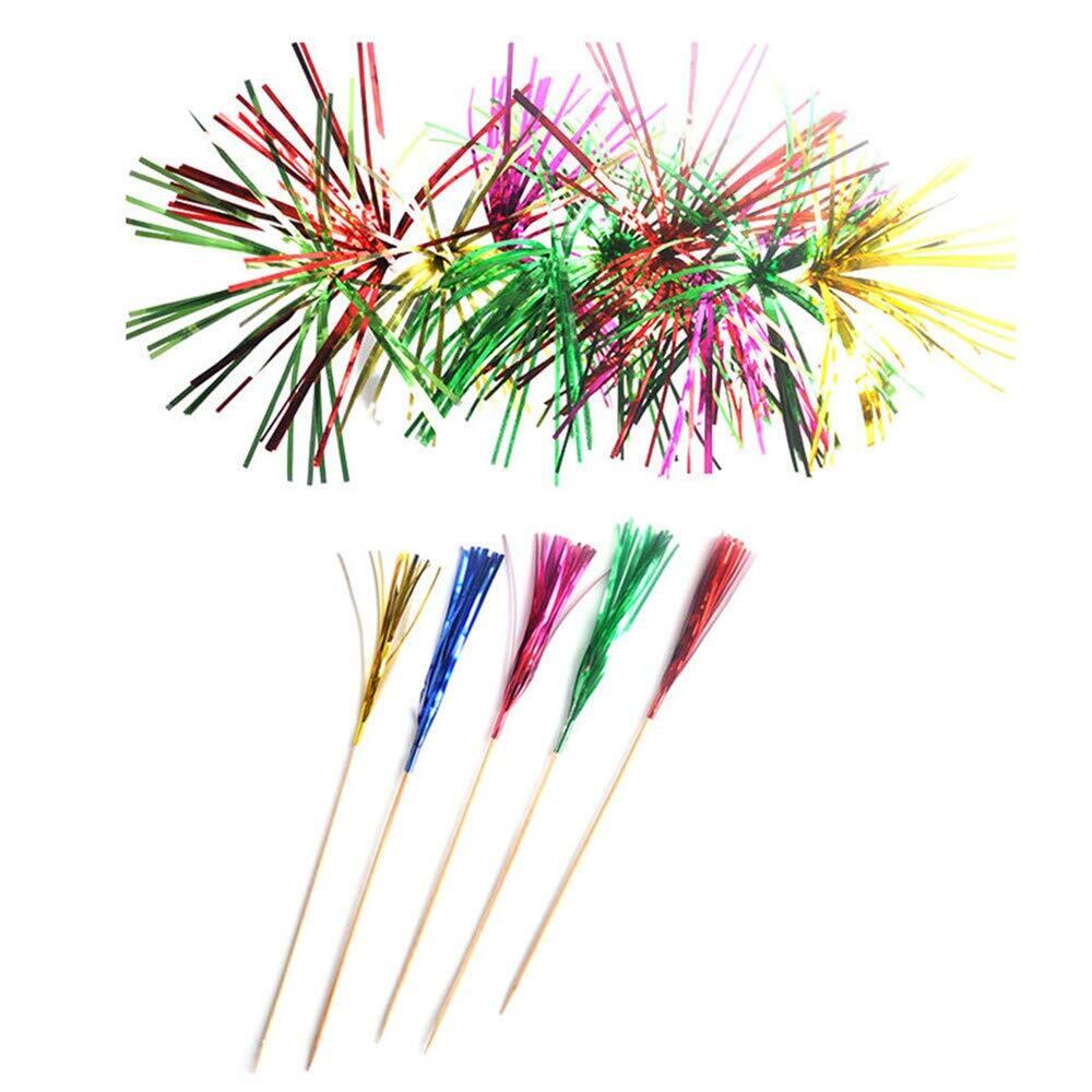 Kingsie カクテルピック 100本セット 使い捨て キラキラ フリンジ フルーツピック 竹 楊枝 前菜ピック カクテルピン カクテルの飾り 結婚式 パーティー 業務用