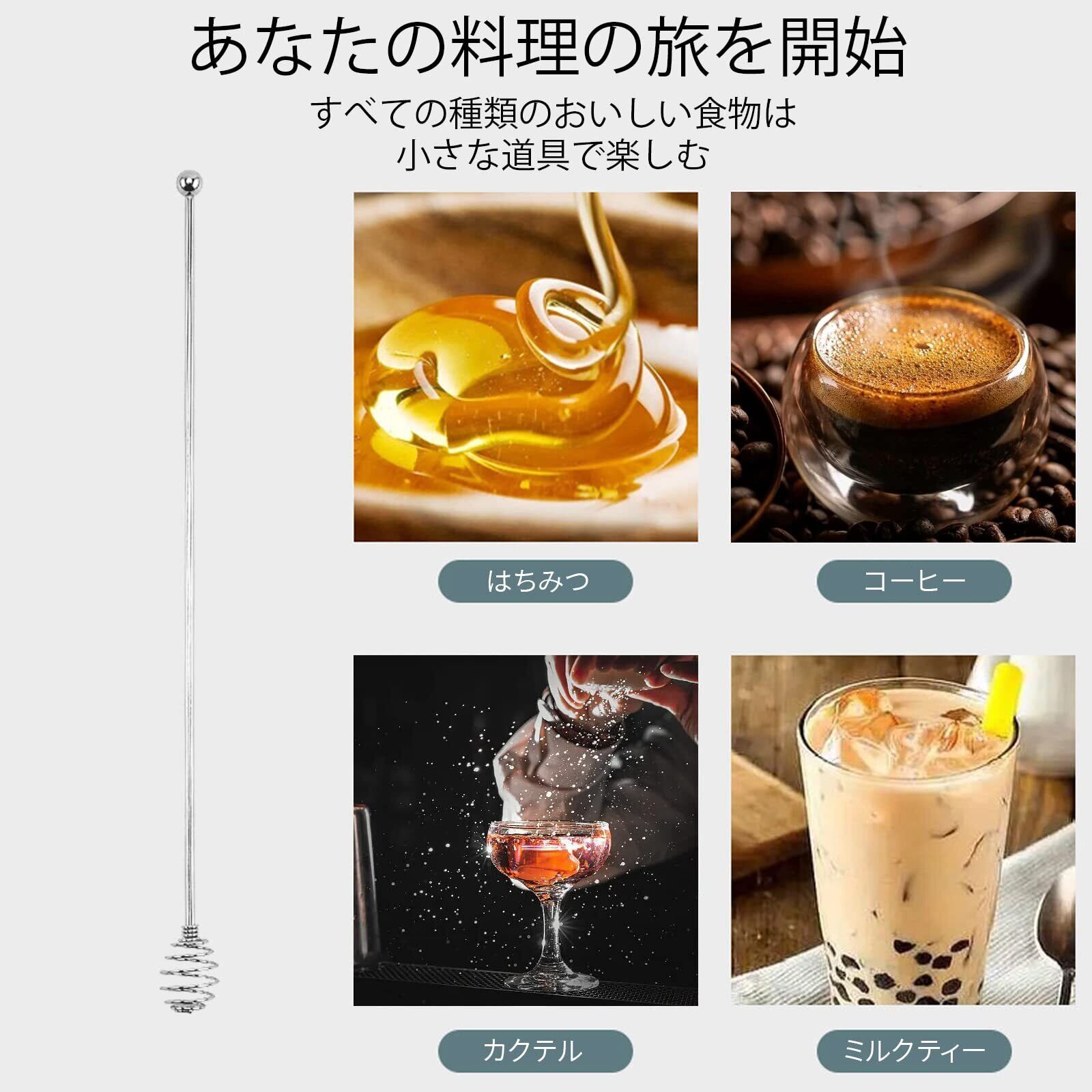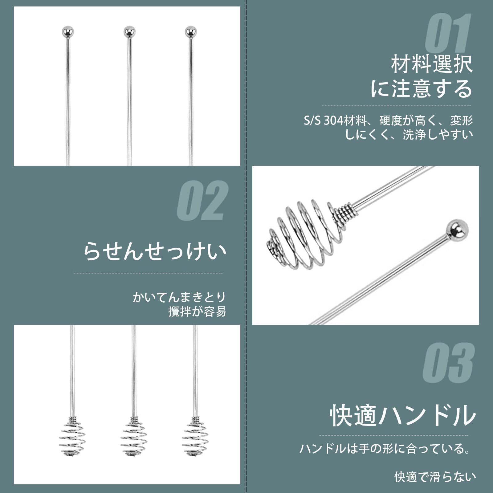 【ステンレス製マドラー】シルバーの攪拌棒はおしゃれで、人気になっています。冷たい飲み物にも熱い飲み物にもお使いいただけます。ハニーディッパーとしても素晴らしい。 【素材】おしゃれなマドラーは高品質のステンレスで作られており、丈夫で錆びにくい。お手入れが簡単、何度でも繰り返し使えます。 【サイズ】ハニーディッパーの長さは約24cmです。ロングハンドルなので、使いやすい。高さのある容器でも適用です。 【幅広い用途】スパイラルの先端はハチミツ、シロップ、ジャム、溶けたチョコレート、キャラメルなどに最適です。ラウンドの先端はコーヒー、お茶、牛乳、ジュースなどにおすすめ! 【パッケージ】ステンレス製ハニーディッパー5本セット。