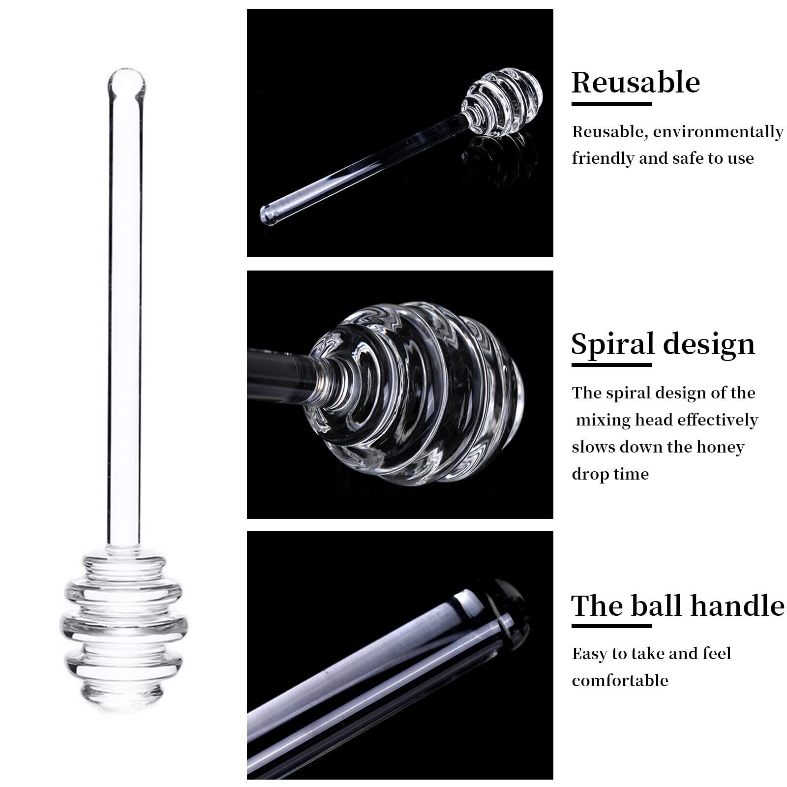 【ハニーディッパー】容器から蜂蜜をすくう用ガラスのハニーディッパーです。蜂蜜をすくうとか、お茶やコーヒーにはちみつを入れて攪拌するなど、とても使いやすい。 【使いやすい】溝のデザインではちみつとの接着面が大きい。はちみつの容器に入れて、回し取るようにして、大量の蜂蜜をすくい取ることができます。蜂蜜はハニースティックに絡みやすく垂れにくい。 【サイズ】全長15CM 先端部分:直径2cm*高さ4cm ガラス製蜂蜜スプーンは耐熱性があり、冷たい飲み物にも熱い飲み物にもお使いいただけます。 【おしゃれでかわいい】ガラス製ハニーディッパーは透明感があっておしゃれです。クリアのカラーはどんなカップにも合わせやすい。表面が滑らかで洗いやすい。 【幅広い用途】蜂蜜スプーンとしてはもちろん、普通のマドラーとしてもお使いいただけます。蜂蜜とセットして、素晴らしいプレゼントになります。