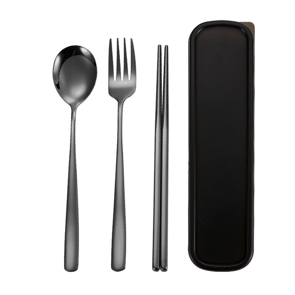 箸 スプーン フォーク 3点セット カトラリーセット ステンレス鋼 北欧風 携帯便利 弁当用食器セット 収納ケース付 コンビセット 通勤通学 学生 大人用多色選択可 遠足 ピクニック 旅行用 (ブラック)