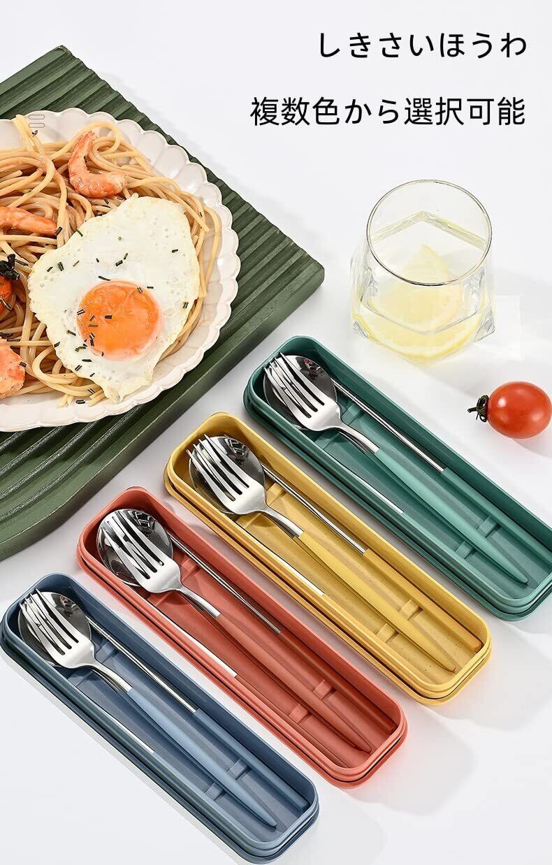 【セット内容】✨:カトラリーセット(スプーン・フォーク・はし)、収納ケース付き。毎日のさまざまな食事ニーズに対応!
