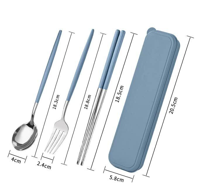 カトラリーセット ステンレス鋼 箸 フォーク スプーン 3点セット ケース付き コンビセット アウトドア 携帯食器セット 衛生 学生 大人用 食器セット ランチ 通勤 通学 弁当箱用 キャンプ用 携帯便利 プレゼント (ブルー)