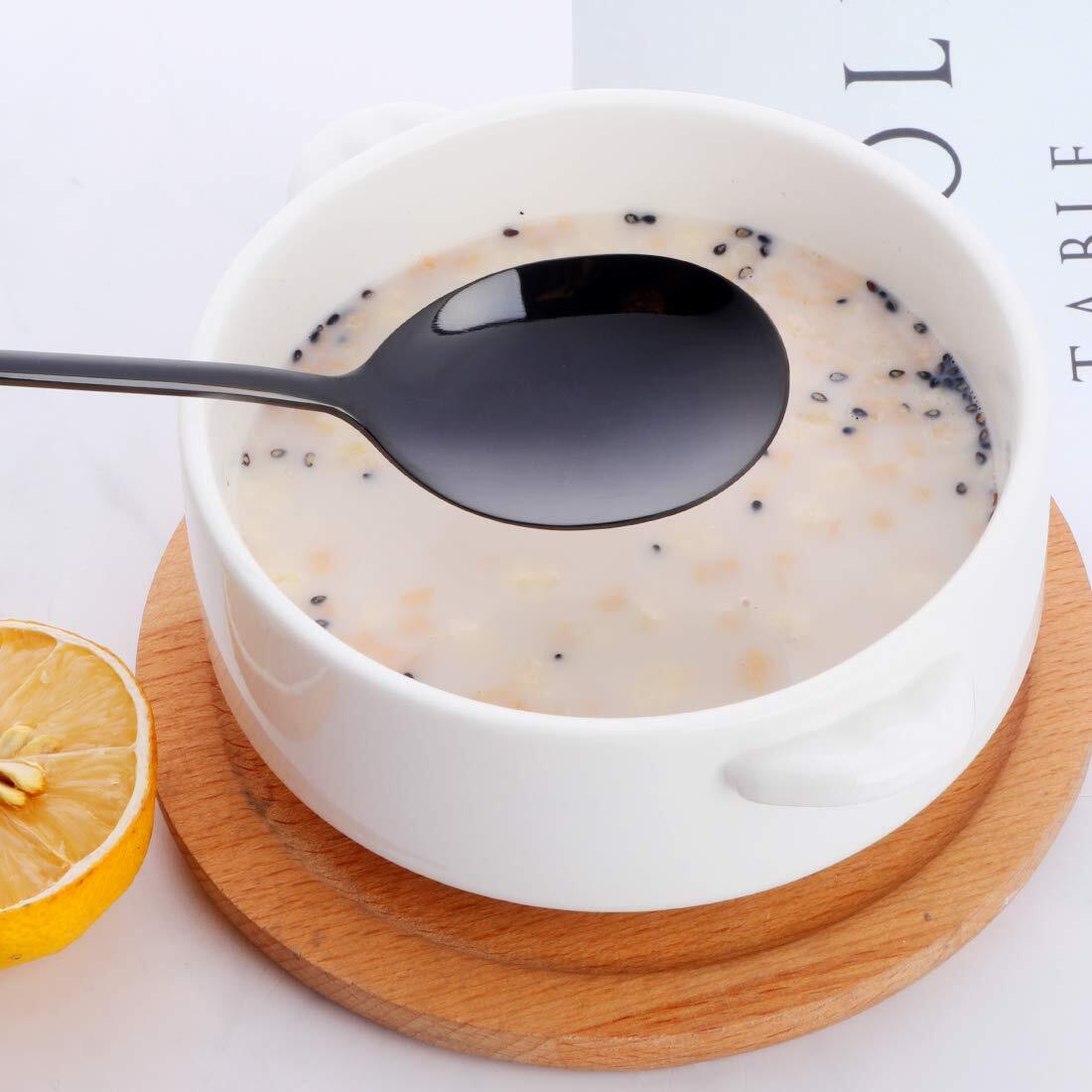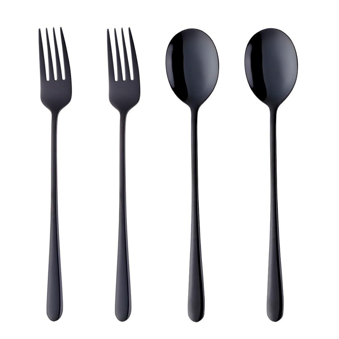 カトラリーセット スプーン フォーク 黒色 2名用 ステンレス製 耐久性有り 鏡面仕上げ カレー パスタ サラダ スープ 家庭 来客 業務用 (4本セット)