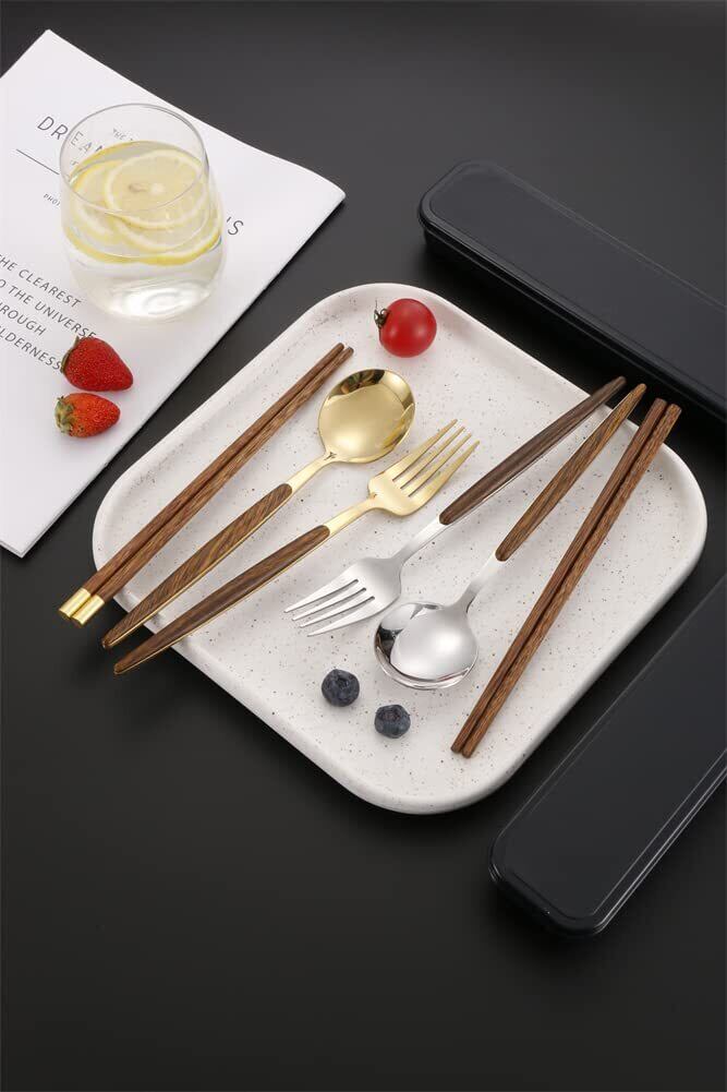 カトラリーセット ステンレス鋼 北欧風 カトラリーセット 食器セット お弁当 カトラリー セット 和風 ディナーセット 携帯食器セット 4本 食器セット ステーキナイフ 通勤 通学 弁当箱用 キャンプ用 携帯便利 プレゼント (B-シルバー)