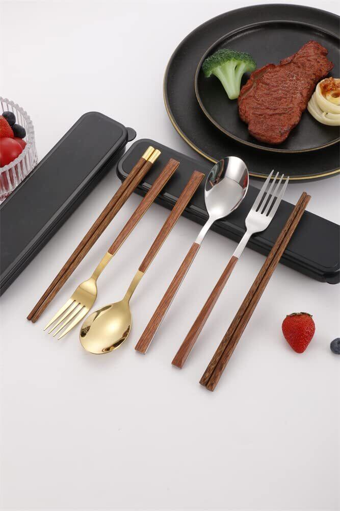 【新春セール】カトラリーセット ステンレス鋼 北欧風 カトラリーセット 食器セット お弁当 カトラリー セット 和風 ディナーセット 携帯食器セット 4本 食器セット ステーキナイフ 通勤 通学 弁当箱用 キャンプ用 携帯便利 プレゼント (B-シルバー)