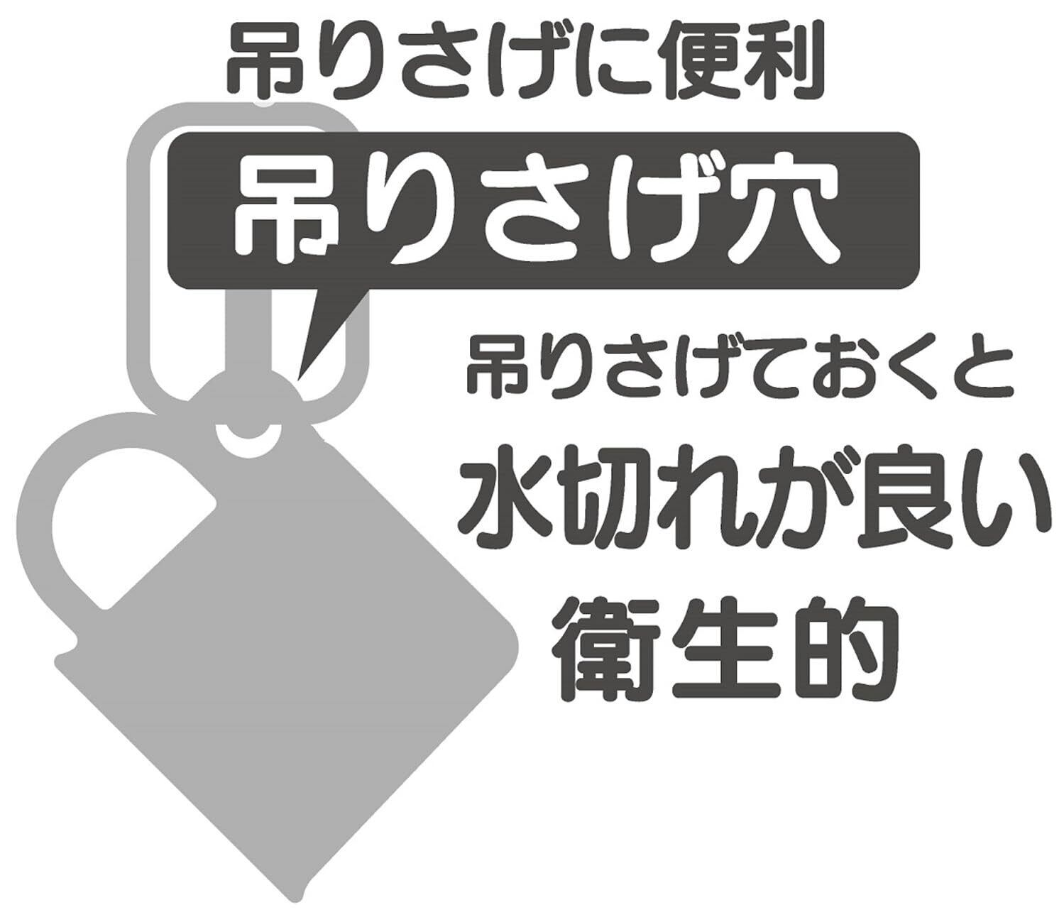 吊り下げに便利な穴が付いているので水切れが良く衛生的に保管できるコップです。