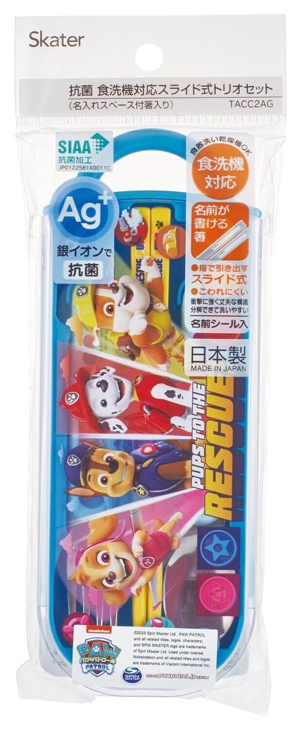 スケーター(Skater) カトラリーセット 子供用 お弁当 箸 スプーン フォーク 日本製 スライド式 名前シール付 抗菌 トリオセット パウ・パトロール 25 男の子 TACC2AG-A