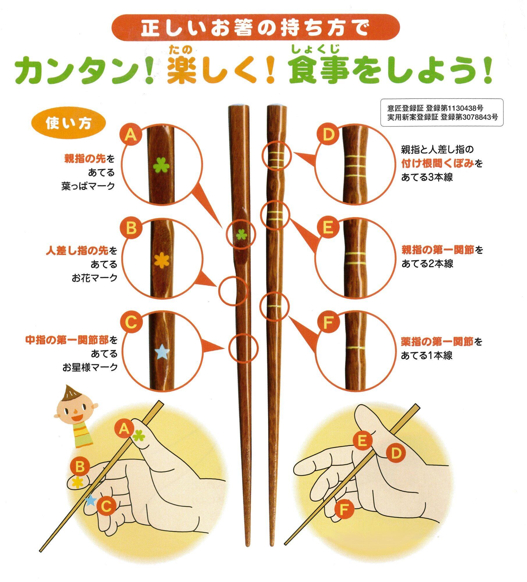 ●子供でも、くぼみやマークに指をあてがえば、正しくお箸が持てる