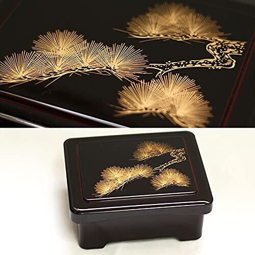 【人気商品】日本製 うな重箱 器 溜内朱 老松 段蓋 DX丼重 約18.1×15.2×8.1cm