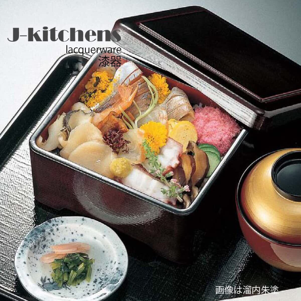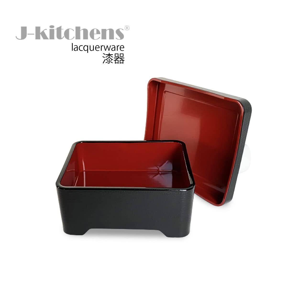 【新春セール】J-kitchens うなぎ 容器 うな重 重箱 食洗機対応 耐熱 木目丼重 黒 内朱塗 鰻 (うなぎ) 重箱 16.8cm ×14.3cm ×7.2cm 日本製 (71)