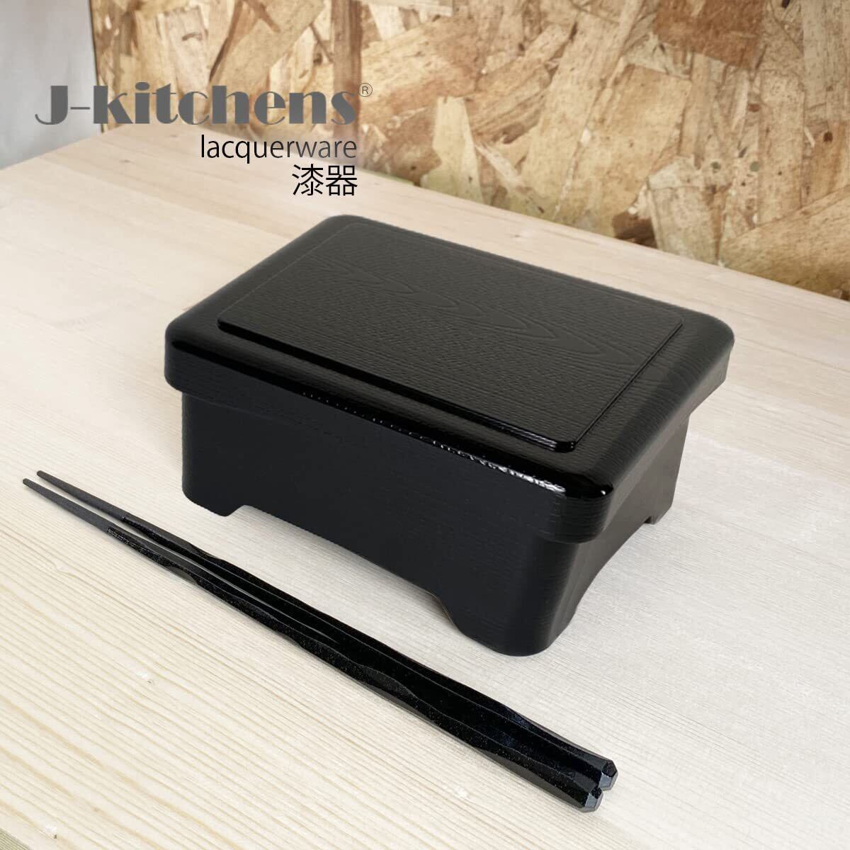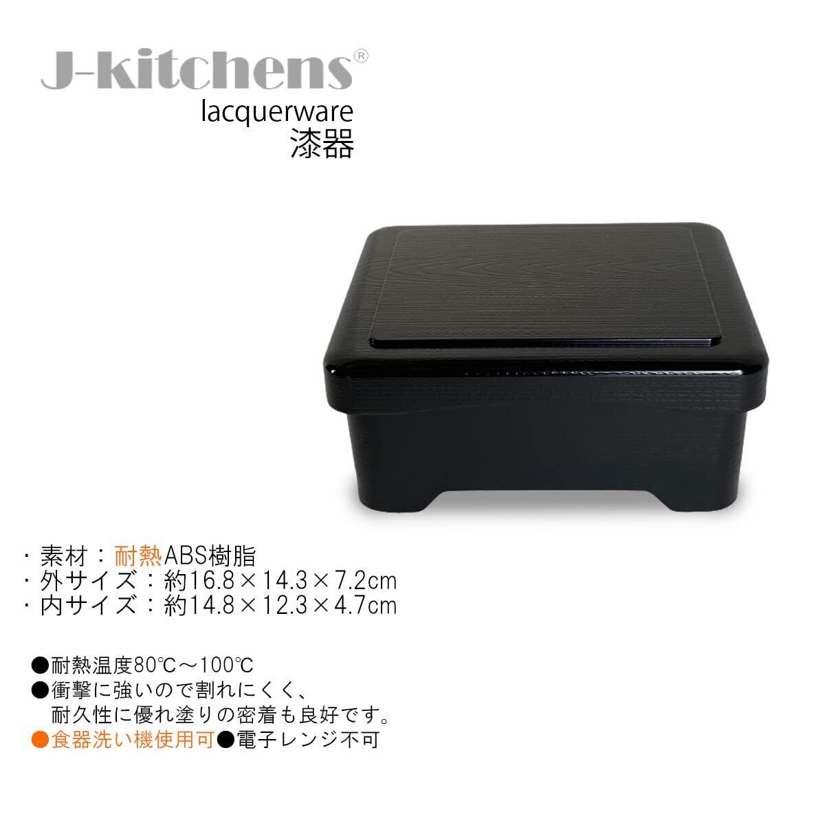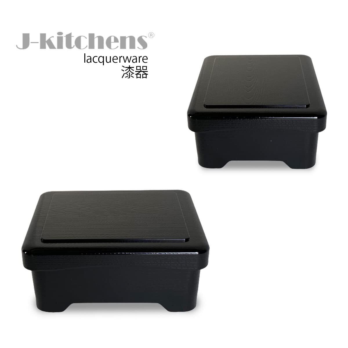 【特価商品】J-kitchens 鰻 容器 うな重 重箱 食洗機対応 耐熱 木目丼重 黒 内朱塗 鰻 (うなぎ) 重箱 16.8cm ×14.3cm ×7.2cm 日本製 (50)