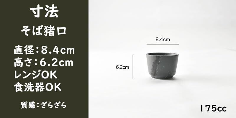 そば猪口:直径8.4 x 高さ6.2cm 満水容量約175cc(日本製)