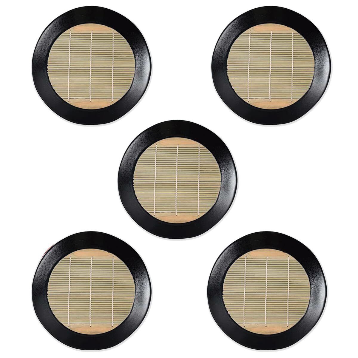 J-kitchens そば 器 ざるそば 5個セット 26cm 波渕そば皿 黒ゆず天目 割れにくい 樹脂製 Φ26.1×2.1cm 日本製