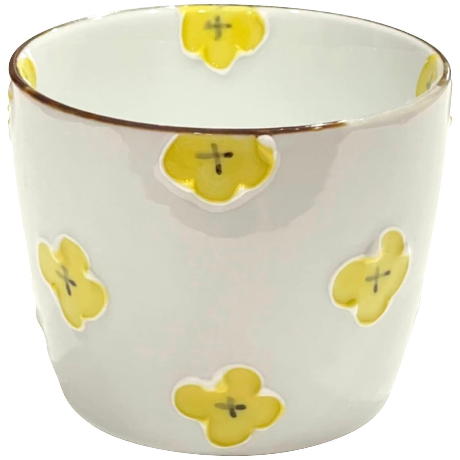 【特価セール】24to3 西富陶磁器 伊万里焼 カップ そば猪口 コップ 徳七窯 約180ml hana 花 花柄 小花 黄色 日本製 480307