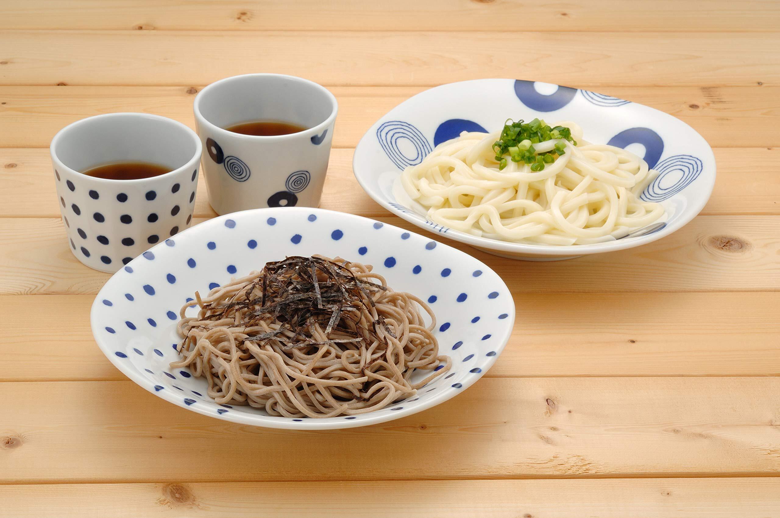 涼しげな染付柄を和モダンテイストに絵付けしました。そば猪口以外にも、一品・つけダレを入れたりと、様々に使えます。和洋何にでも合うデザインです。そば猪口カップ以外は商品ではありません。
