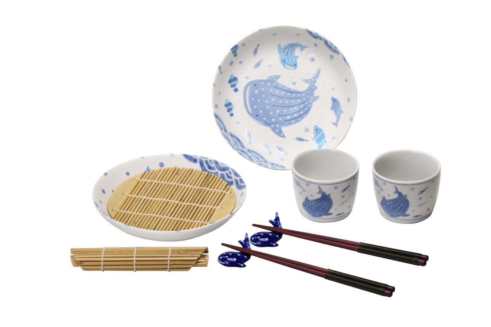 可愛らしいジンベエザメと、海の生き物が遊んでいるデザインです。涼しげな器が特徴的です。