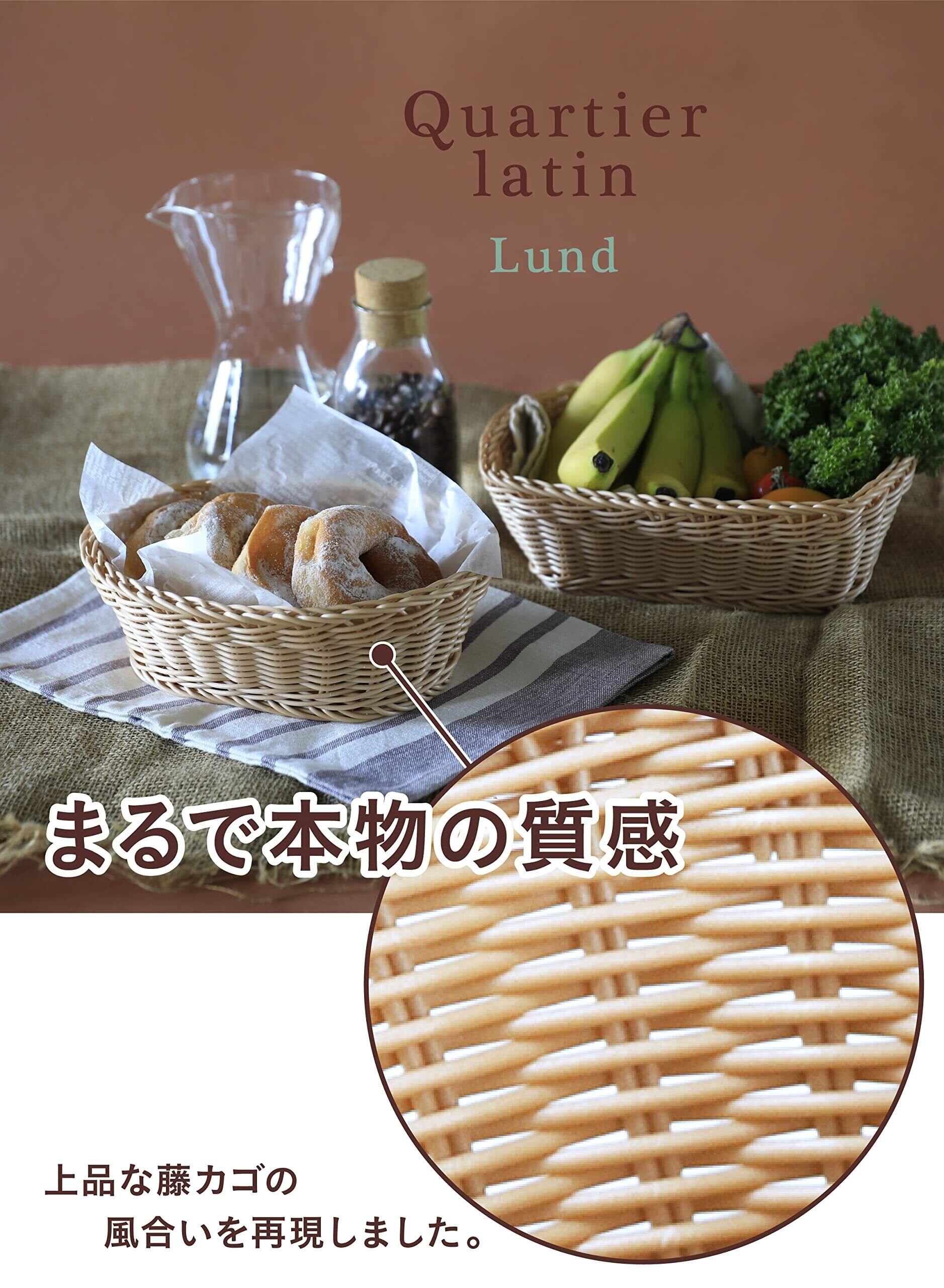 まるで本物の質感なのに、お手入れは簡単。パンやお菓子・調味料やカトラリーなどを入れるだけで、なんだか素敵な食卓に。毎日使いたくなる「洗えるバスケット ルンド」