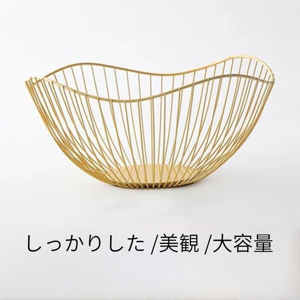 北欧 果物バスケットフルーツ収納 フルーツボウル 大容量 おしゃれ 長持ち 果物 籠 メタルワイヤー ゴールド・ブラック(ゴールド)