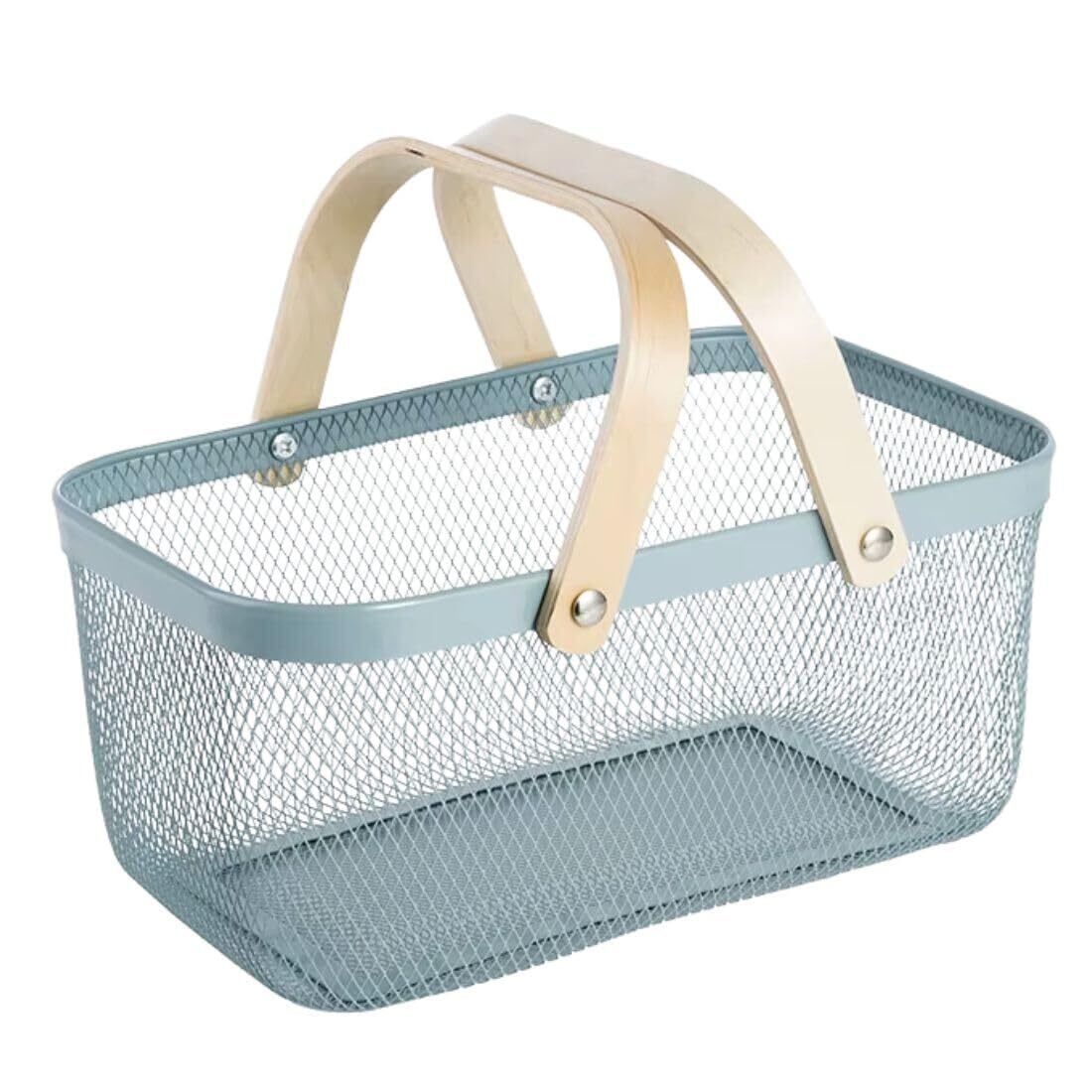 タマトシ 果物・野菜 食品 タオル 小物 収納バスケット スチール メッシュ フルーツ ワイヤー バスケット レジ 買い物 かご おしゃれ 持ち手付き 長方形 ブルー