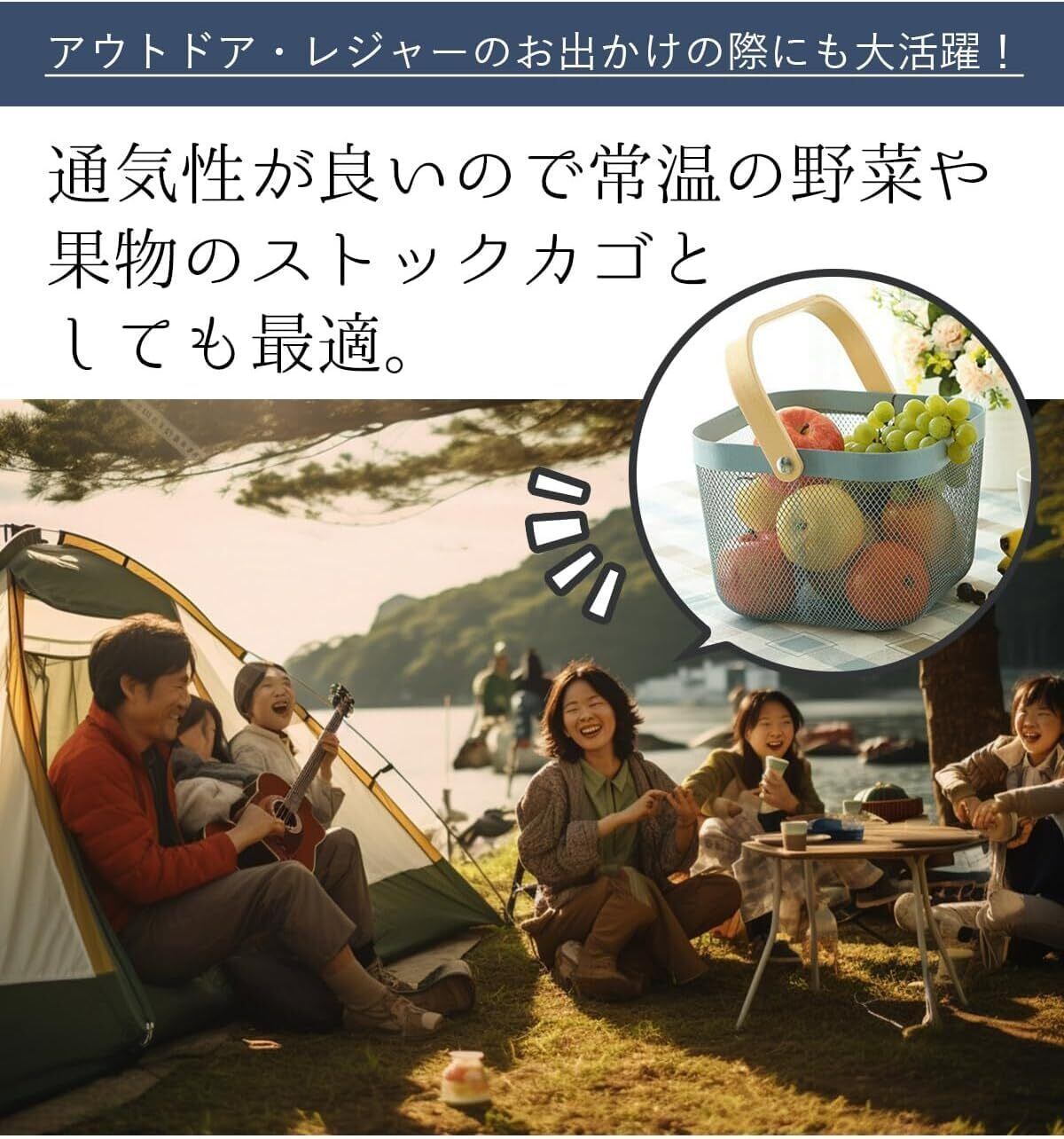 【2022最新】タマトシ 果物・野菜 食品 タオル 小物 収納バスケット スチール メッシュ フルーツ ワイヤー バスケット レジ 買い物 かご おしゃれ 持ち手付き 長方形 ブルー