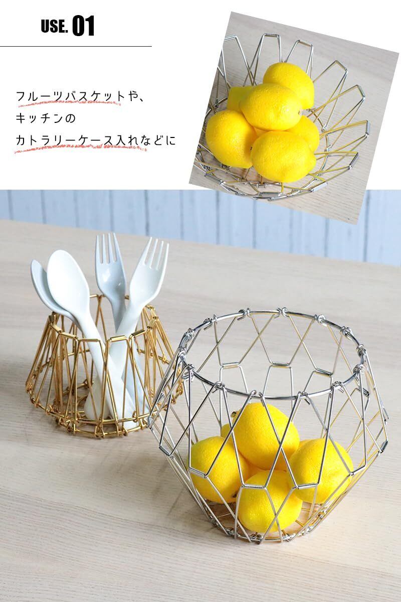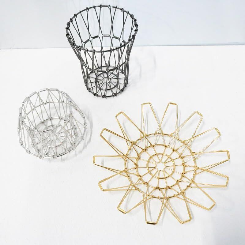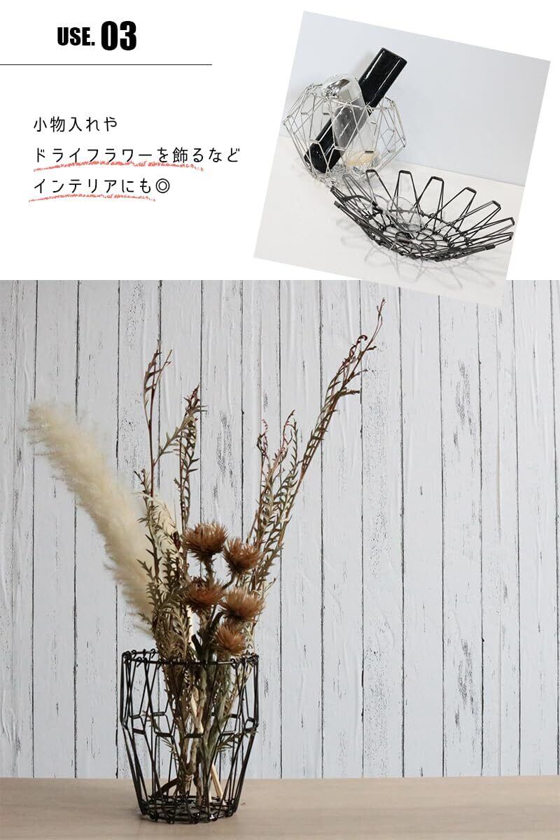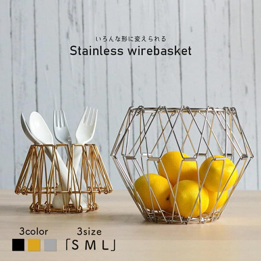 sezu ステンレス ワイヤーバスケット 折りたたみ 丸型 変形可能 フルーツバスケット 鍋敷き 黒 金 銀 おしゃれ ディスプレイ (ブラック, Mサイズ)