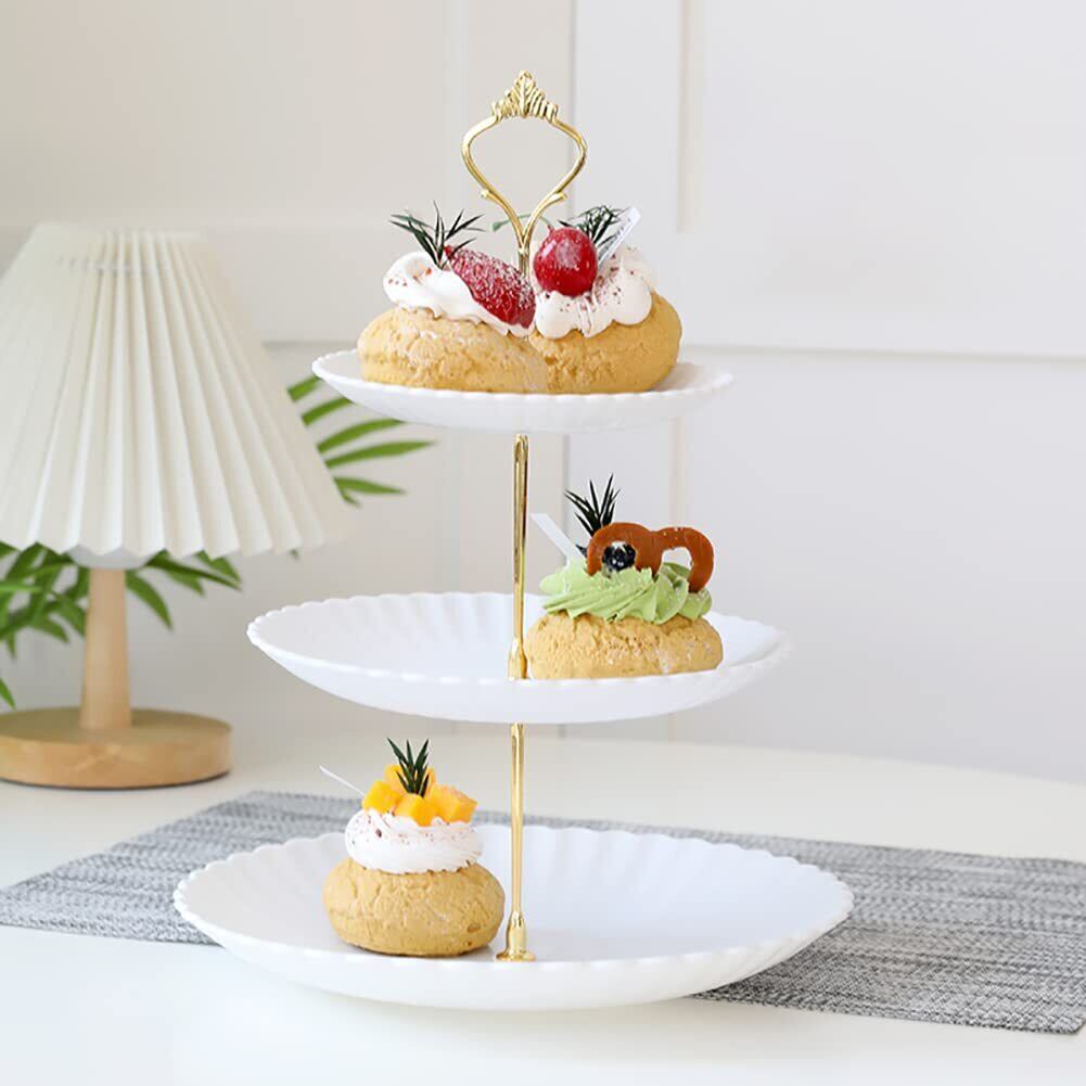 デザートスタンド ケーキスタンド 果物収納 お菓子皿 北欧風 結婚式 誕生日 パーティー用 丸型 ホワイト+ゴールド