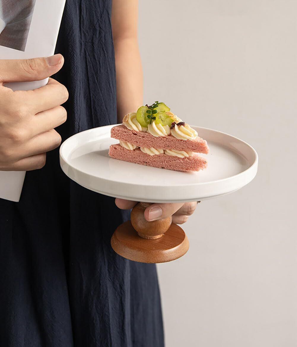 ケーキスタンド アフタヌーンティースタンド ケーキ展示用 お菓子皿 デザートスタンド 果物収納 結婚式 誕生日 パーティ 陶器+木製