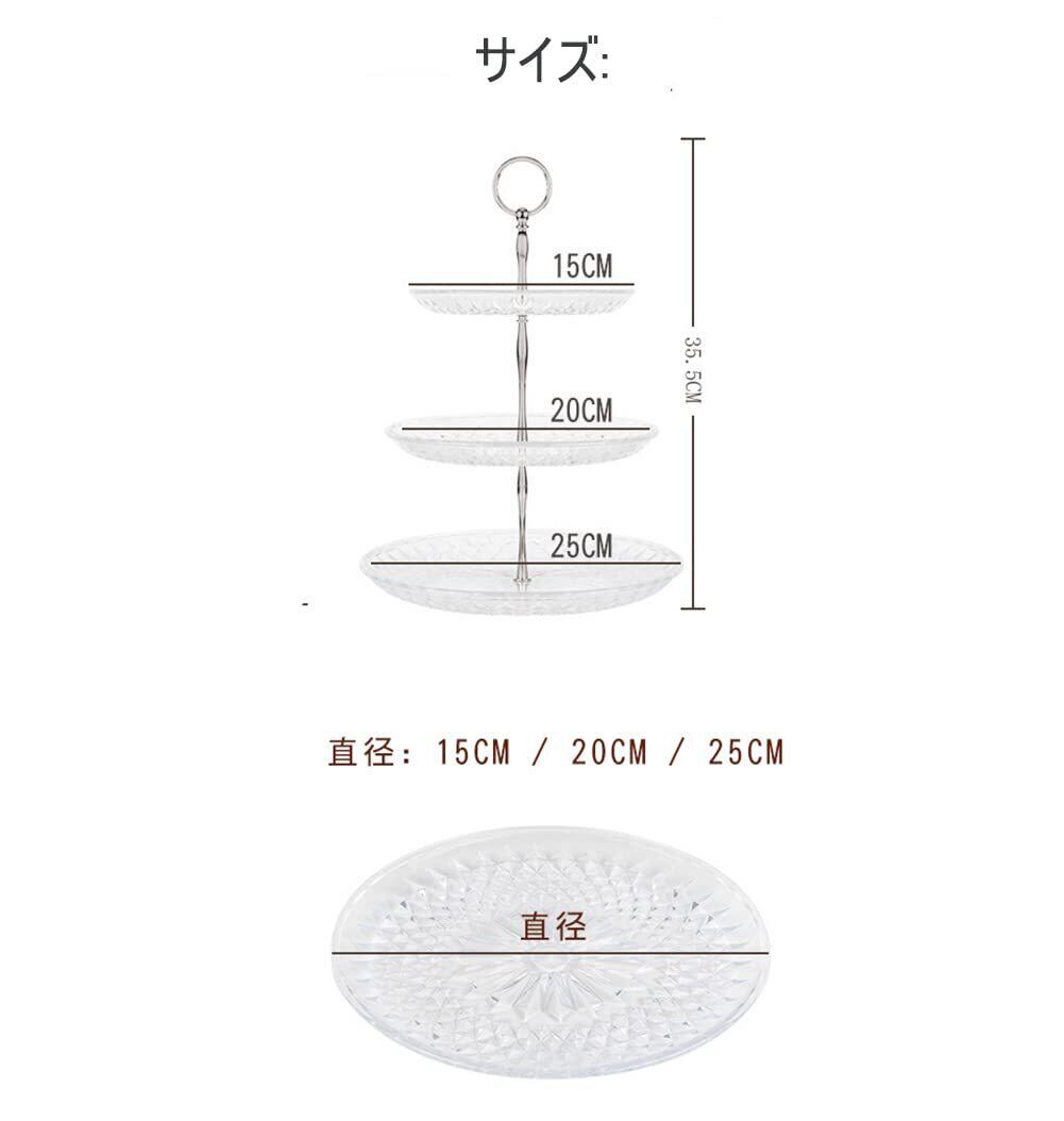 ケーキスタンド 果物収納 お菓子皿 デザートスタンド 3段 展示用 北欧風 透明 結婚式 誕生日 パーティー用 アクリル樹脂