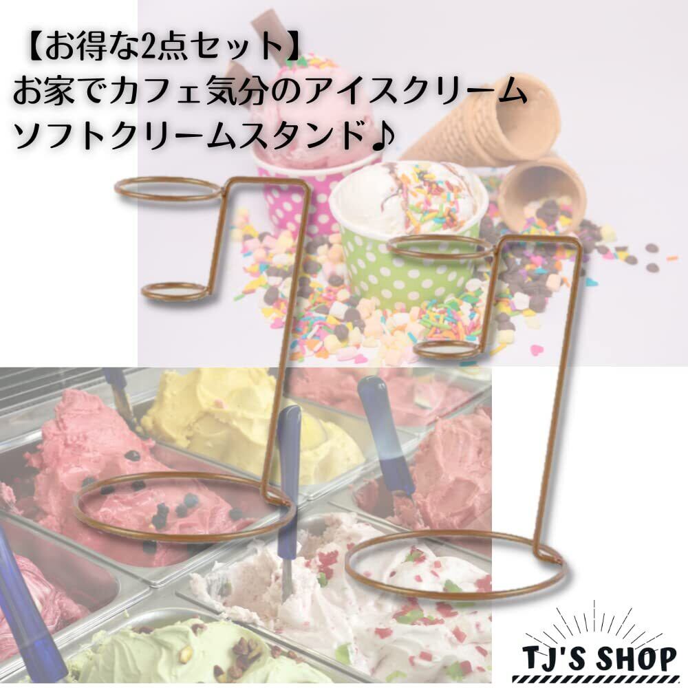 アイスクリーム スタンド ホルダー ソフトクリーム立て 展示用 2個セット (ゴールド2)