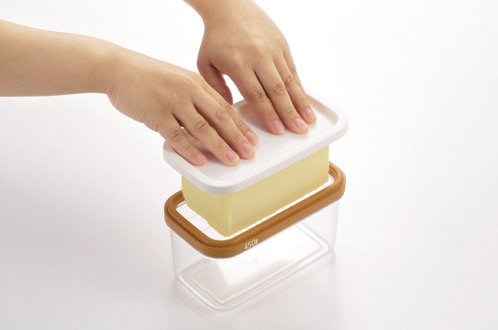 ●200gのバターをギュッとひと押しで使いやすい約5gの薄切りにカット