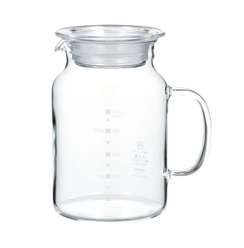 サイズ:幅125mm×奥行90mm×高142mm 口径:73mm 容量:実用容量 500mL 重量(個箱含む):約300 g 材質:本体・フタ / 耐熱ガラス「HARIO Glass」、パッキン / シリコーンゴム 原産国:本体・フタ/日本製、パッキン/ベトナム製